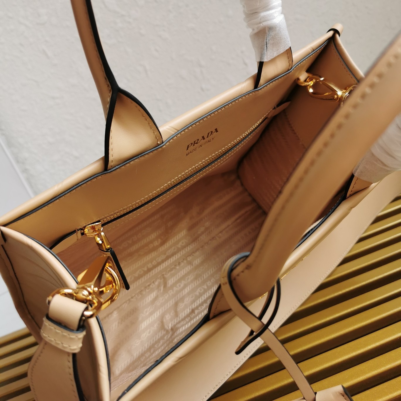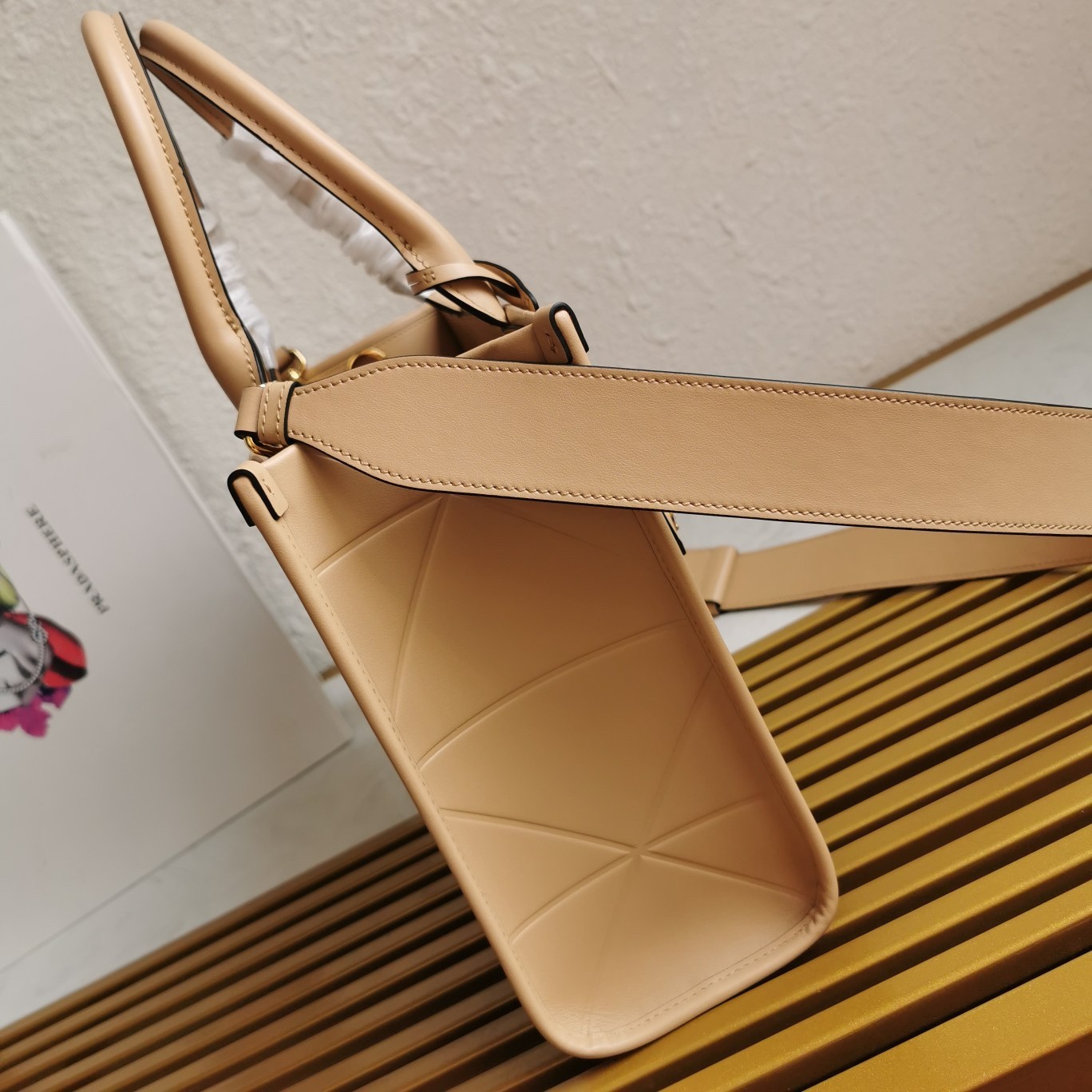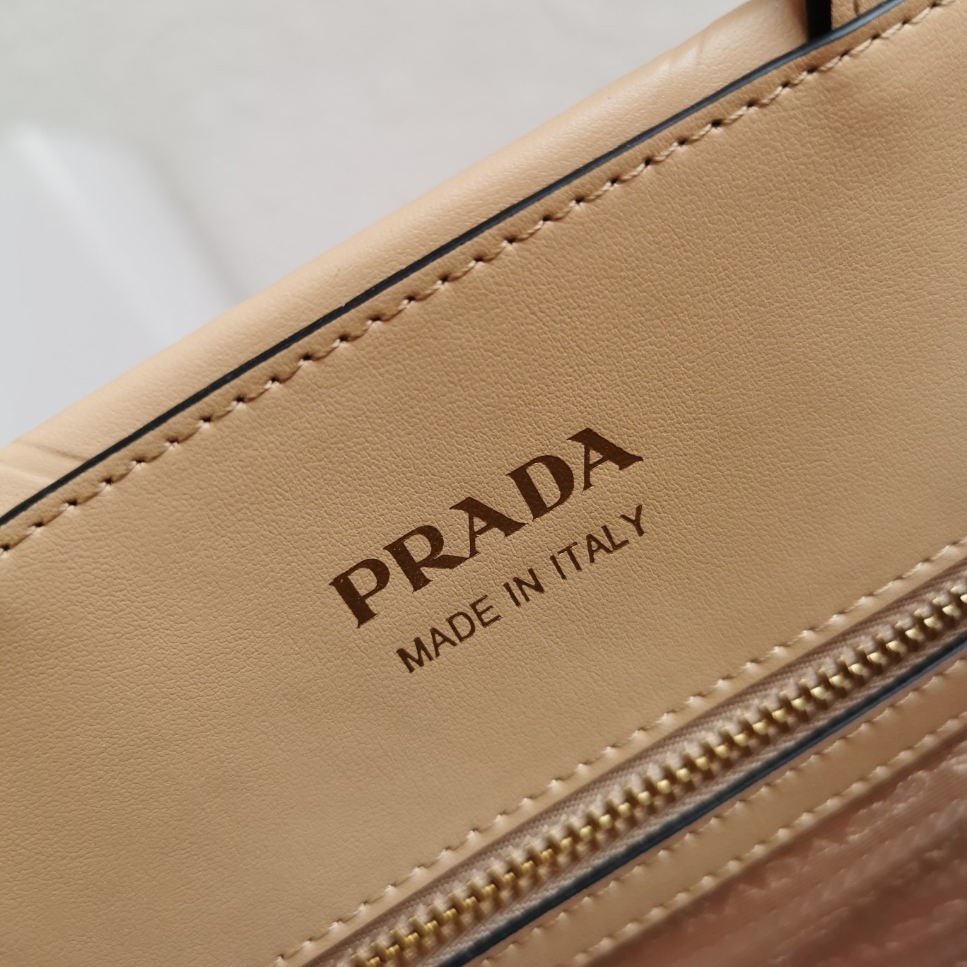 Prada Symbole Small Bag with Topstitching in Beige Leather