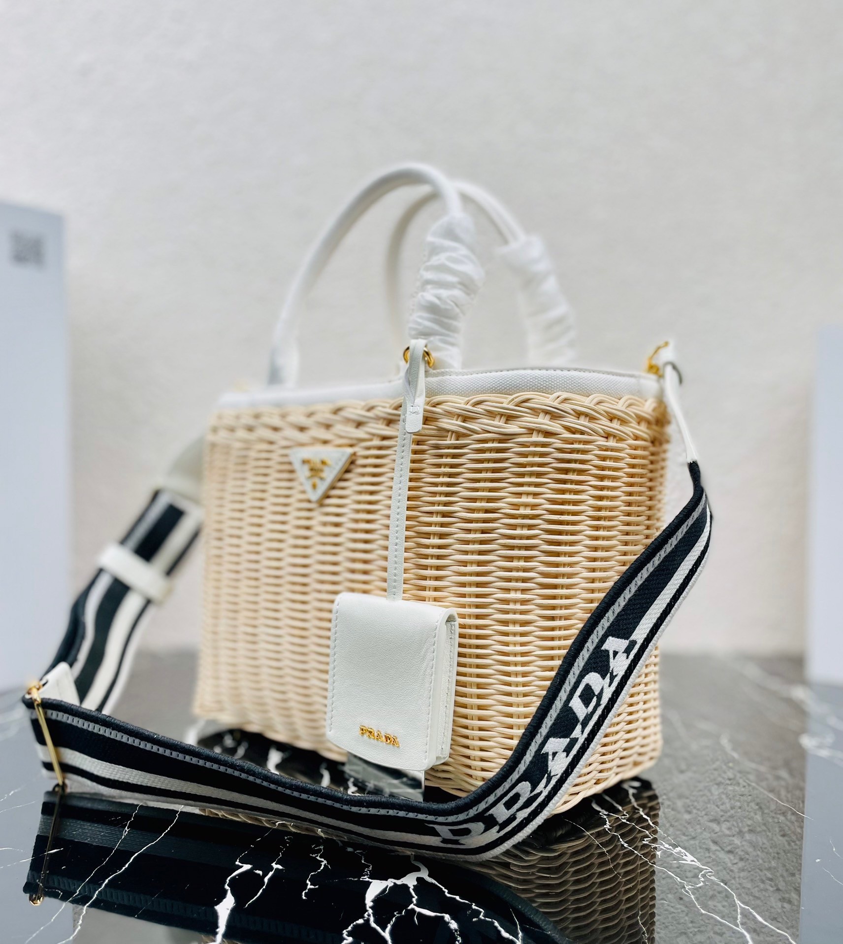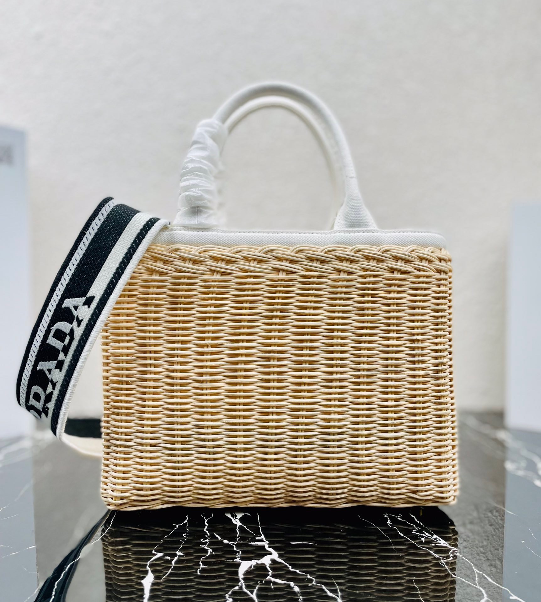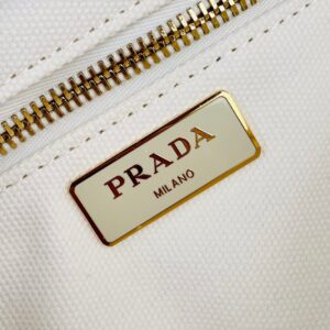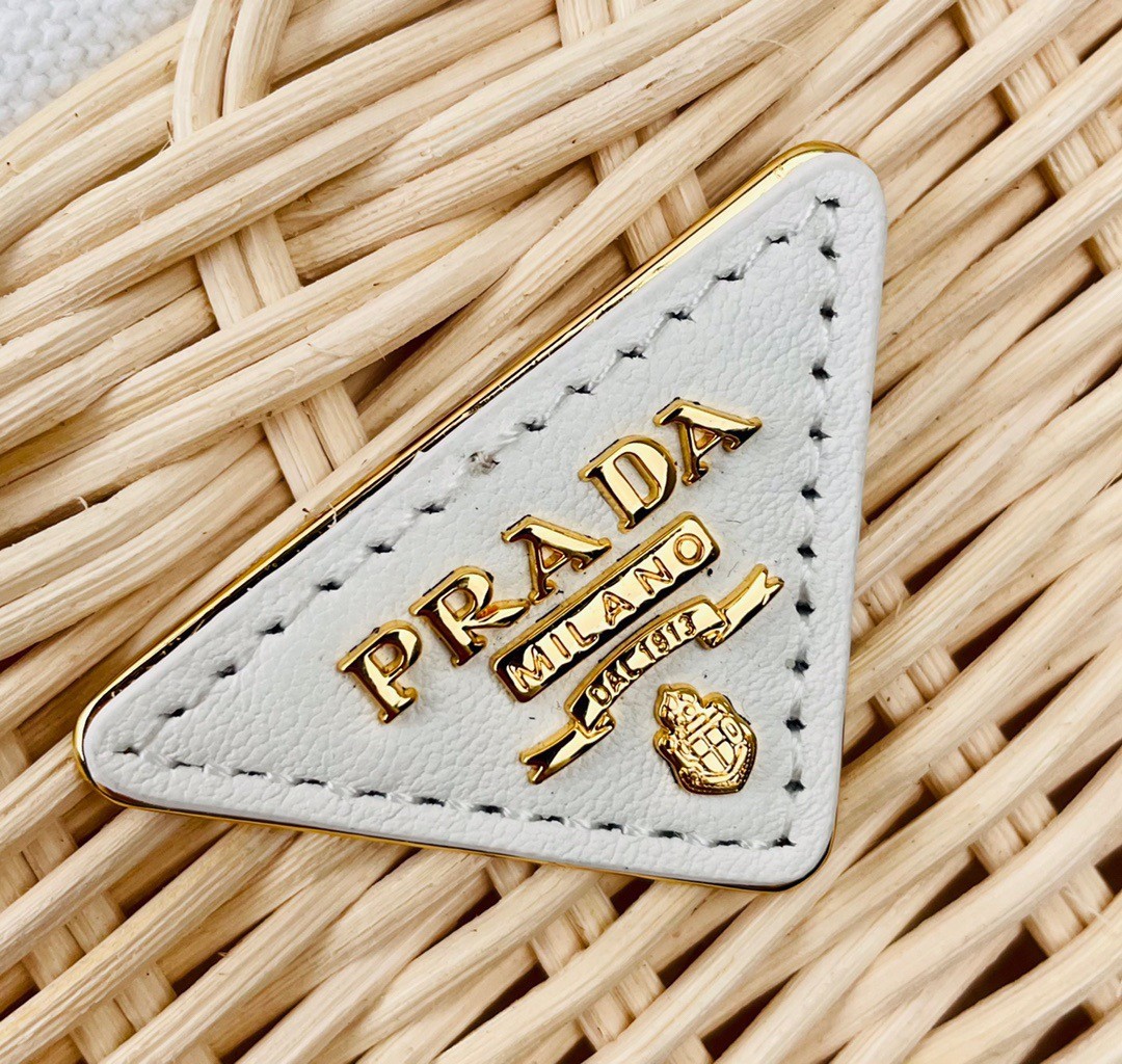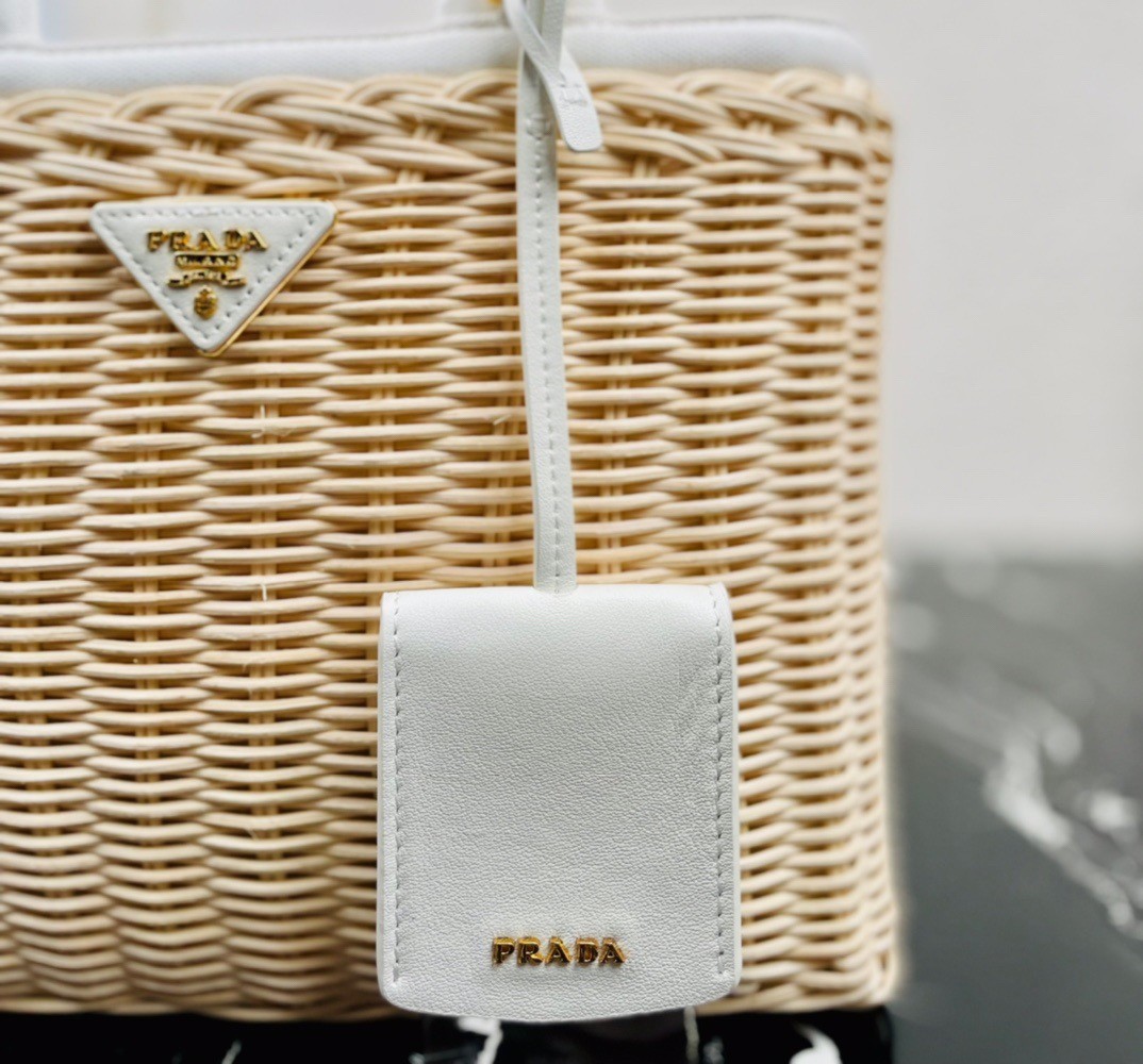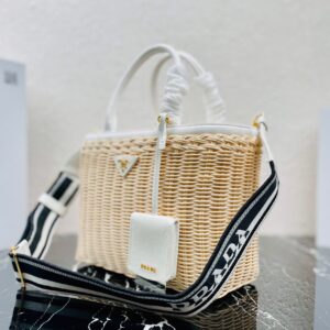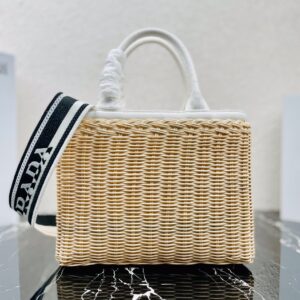 Prada Tote Bag In Wicker and White Canvas