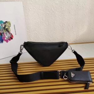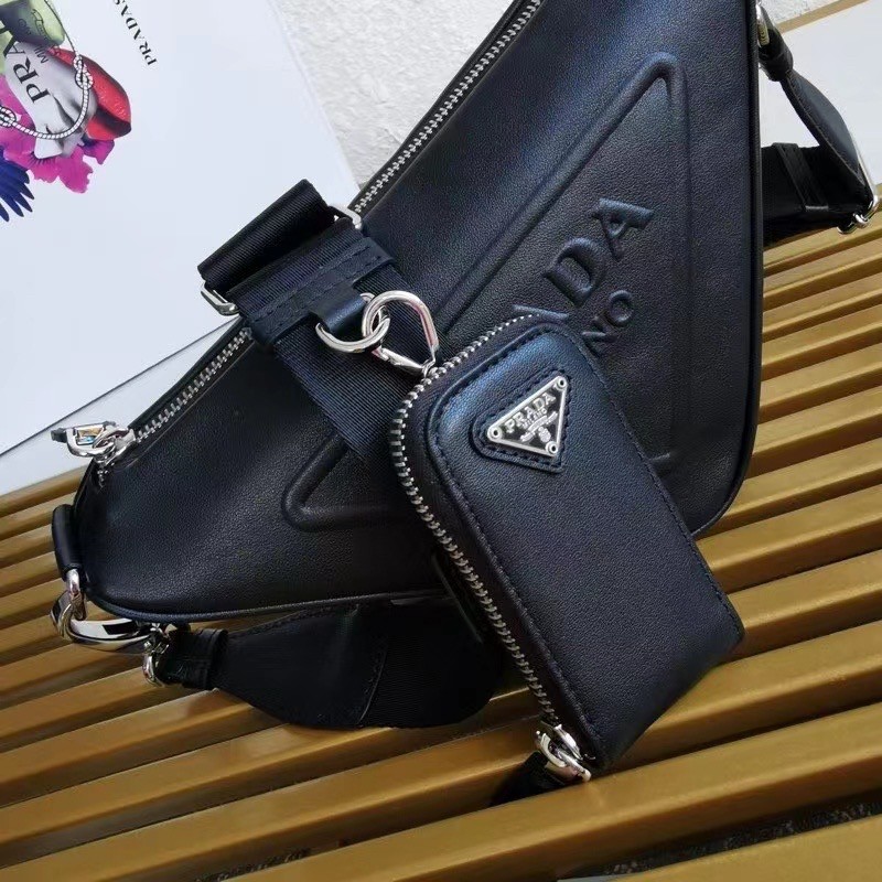 Prada Triangle Shoulder Bag In Black Leather
