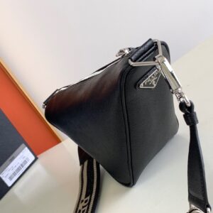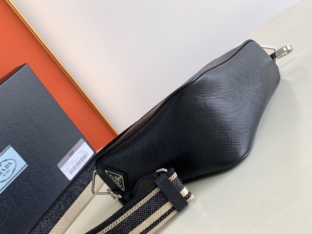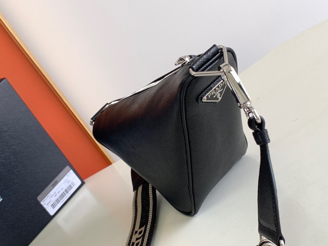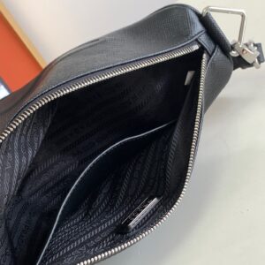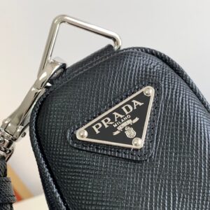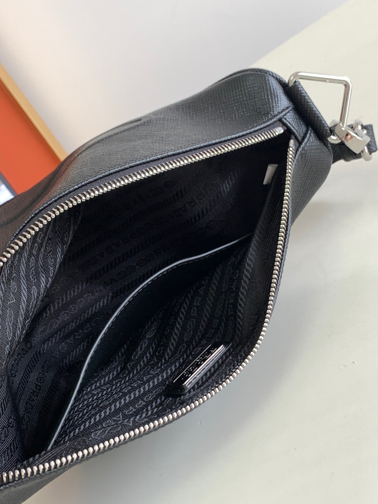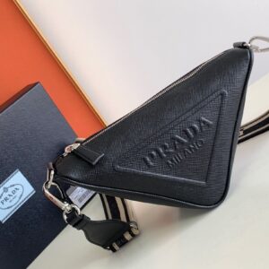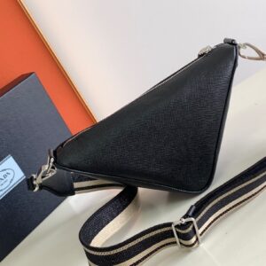 Prada Triangle Shoulder Bag In Black Saffiano Calfskin