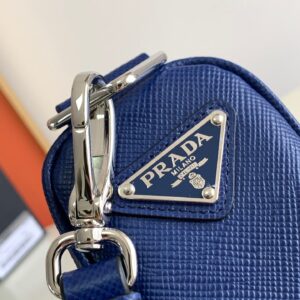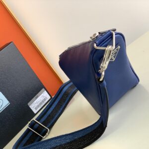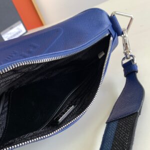 – Detachable, adjustable shoulder strap in embroidered webbing and leather