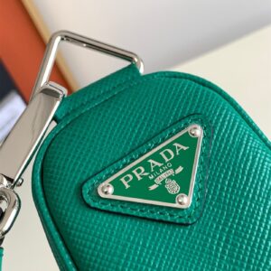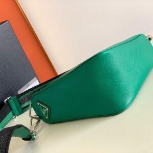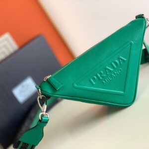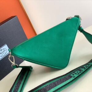 Prada Triangle Shoulder Bag In Green Saffiano Calfskin