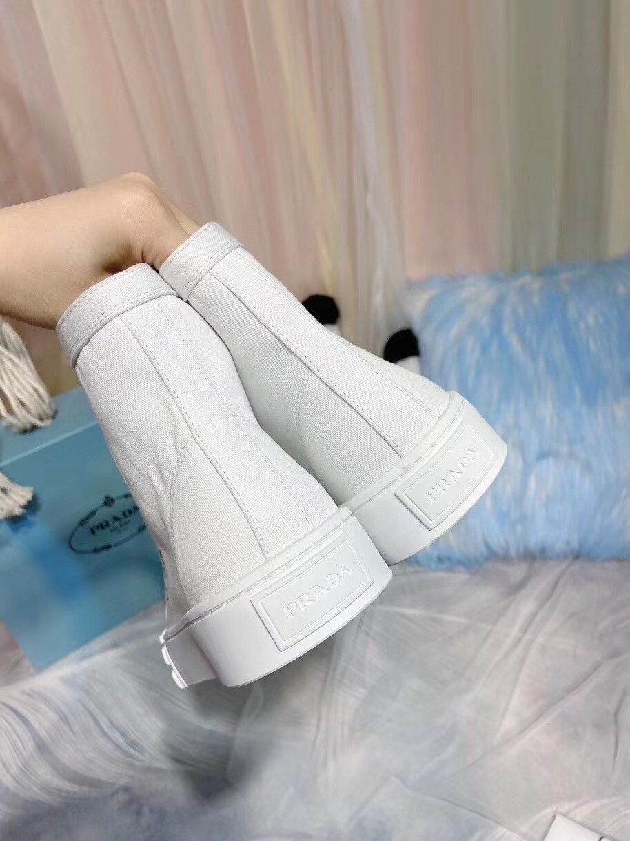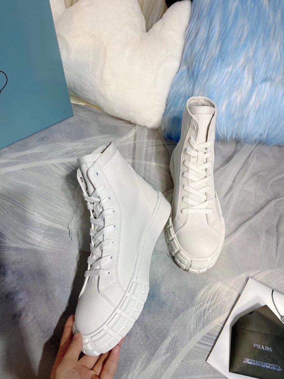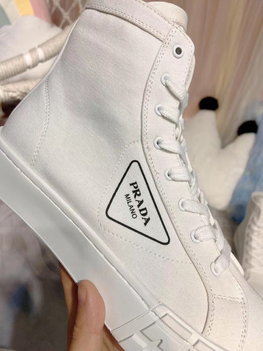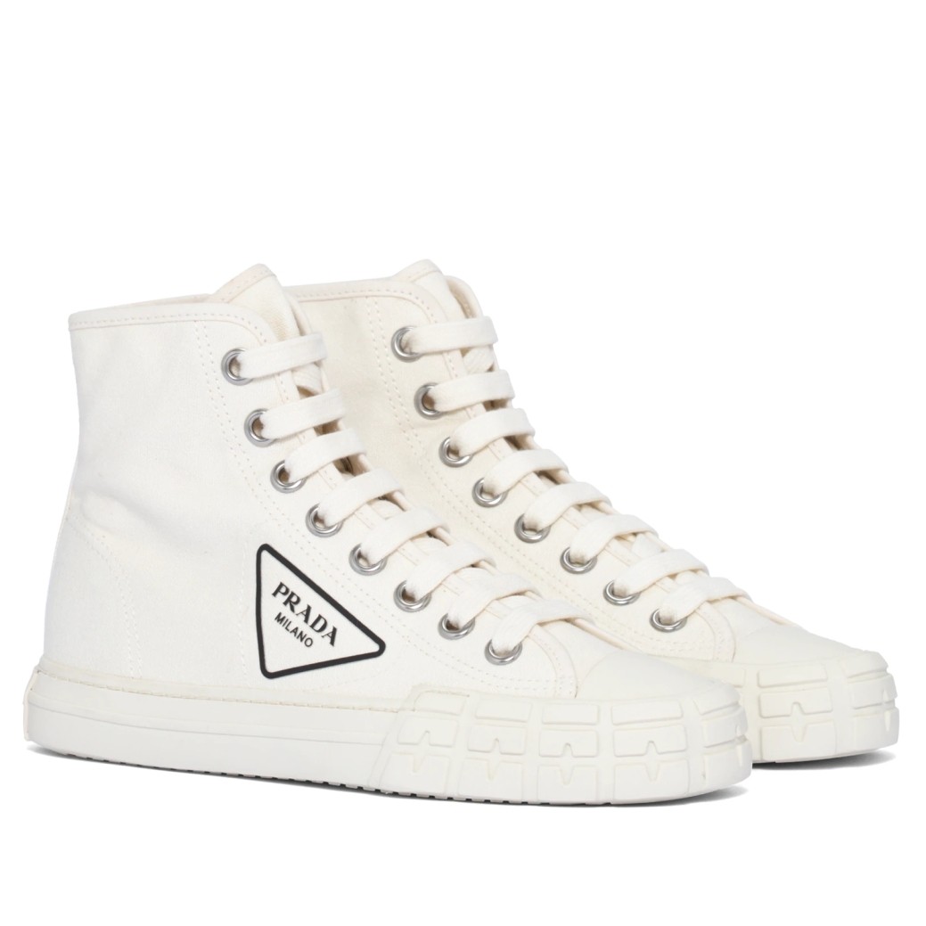 Prada White Cotton Canvas High-top Sneakers