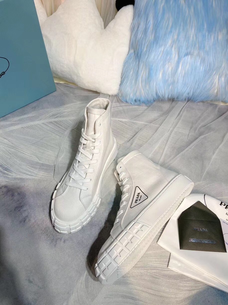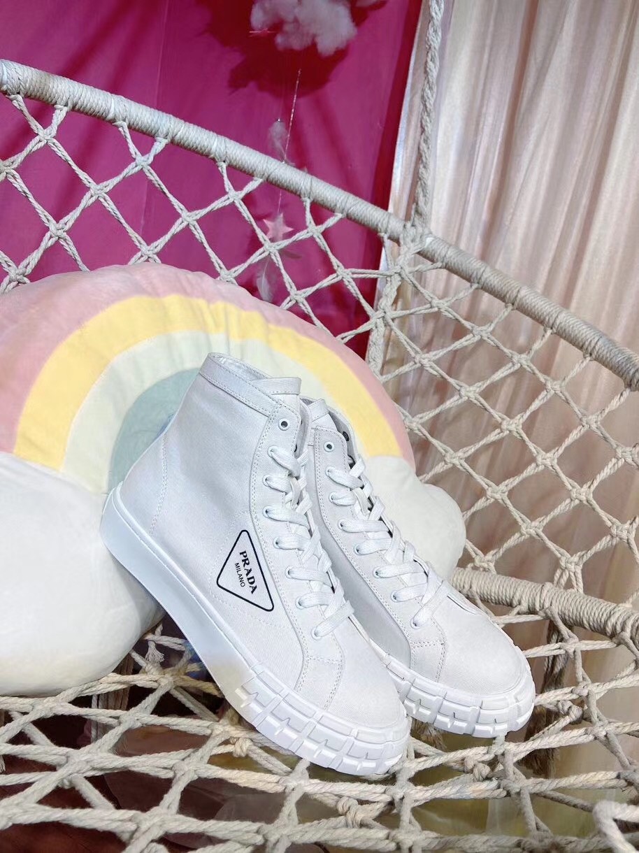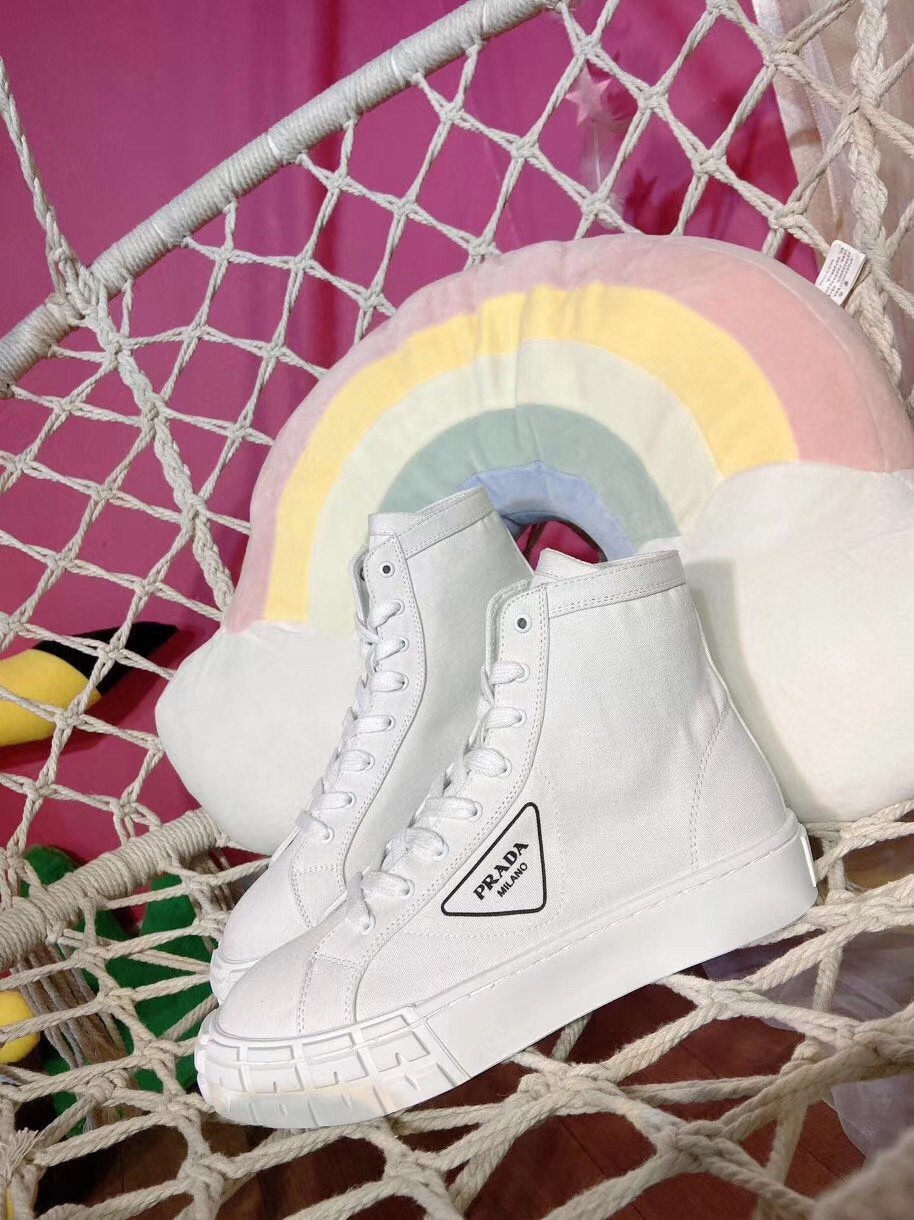 Prada White Cotton Canvas High-top Sneakers