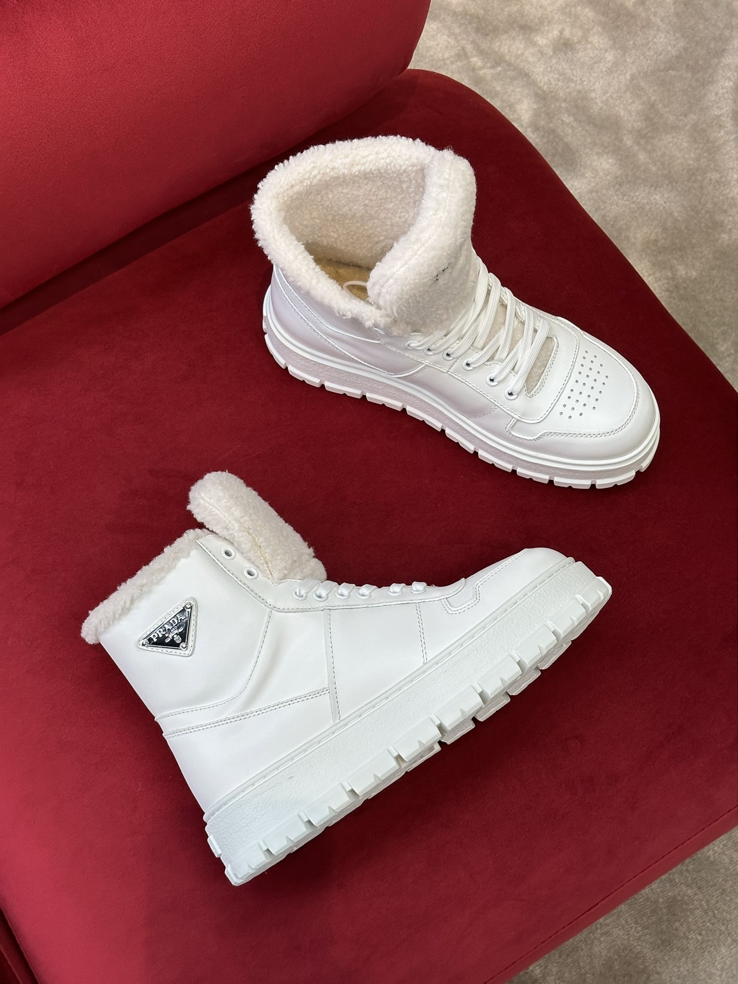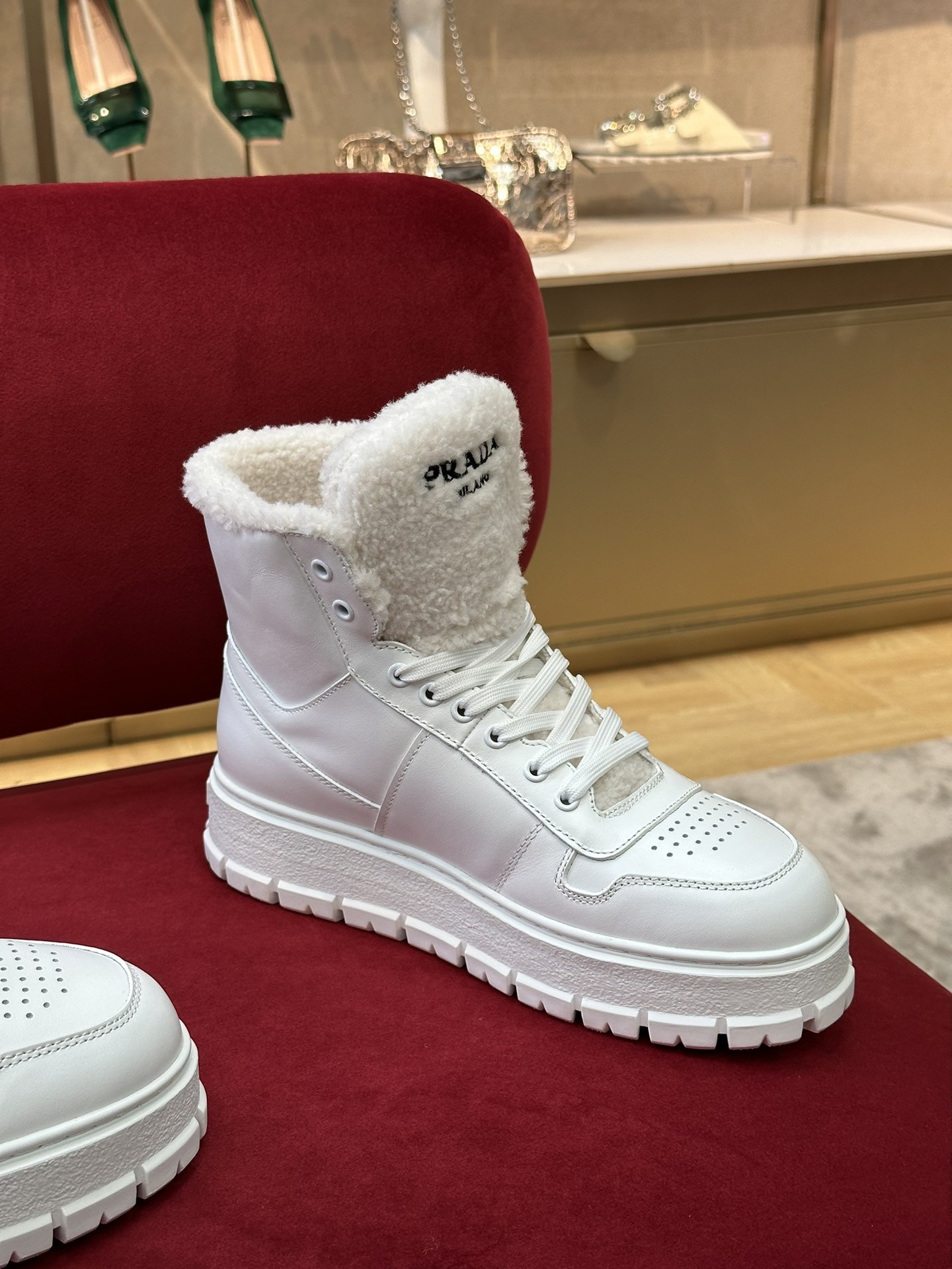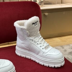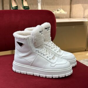 Prada Women’s High-top Sneakers in Leather and Shearling