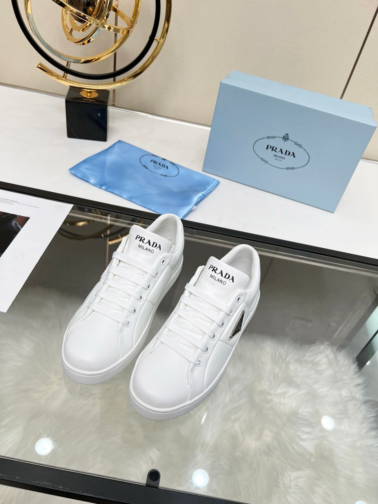 Prada Women's Sneakers in White Nappa Leather