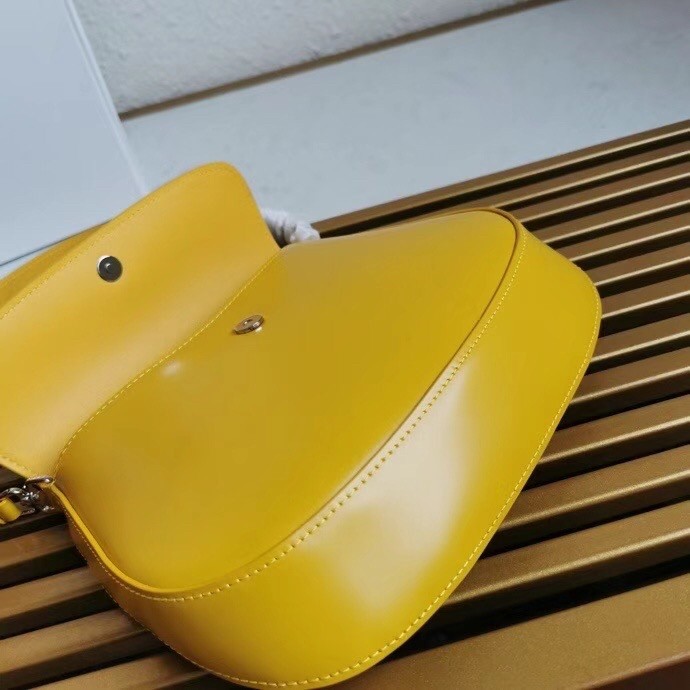 – Enameled metal triangle logo on the flap