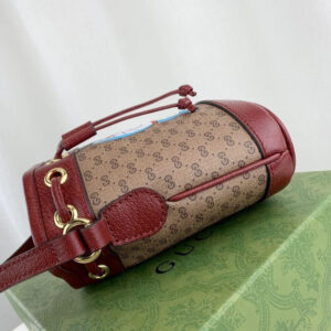 This mini bucket bag is part of a special collaboration between Doraemon and Gucci. Born on September 3rd, 2112, a cat-type robot was sent from the 22nd century to help a young boy called Nobita with secret gadgets from his four-dimensional pouch. A playful character, Doraemon hates mice and loves Dorayaki, a sweet pancake.
