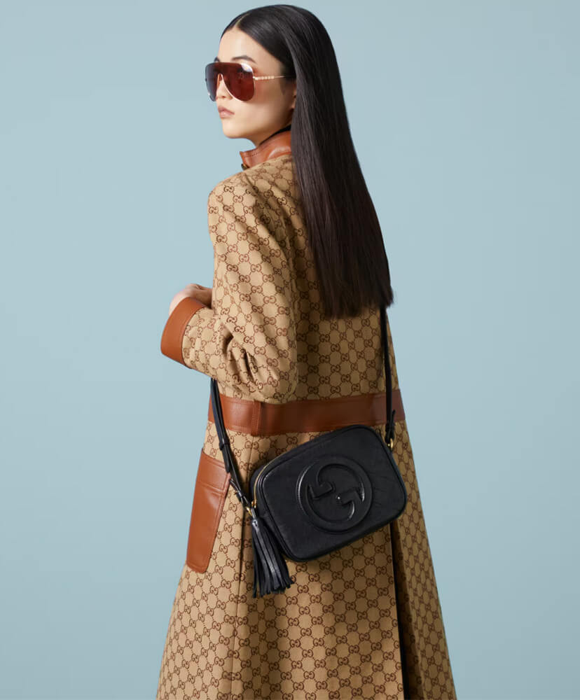 The Round Interlocking G that characterizes the Gucci Blondie line originates from the House archives. Signature pieces such as this Gucci Blondie shoulder and crossbody bag reinterpret the emblem as a subtler leather patch detail.