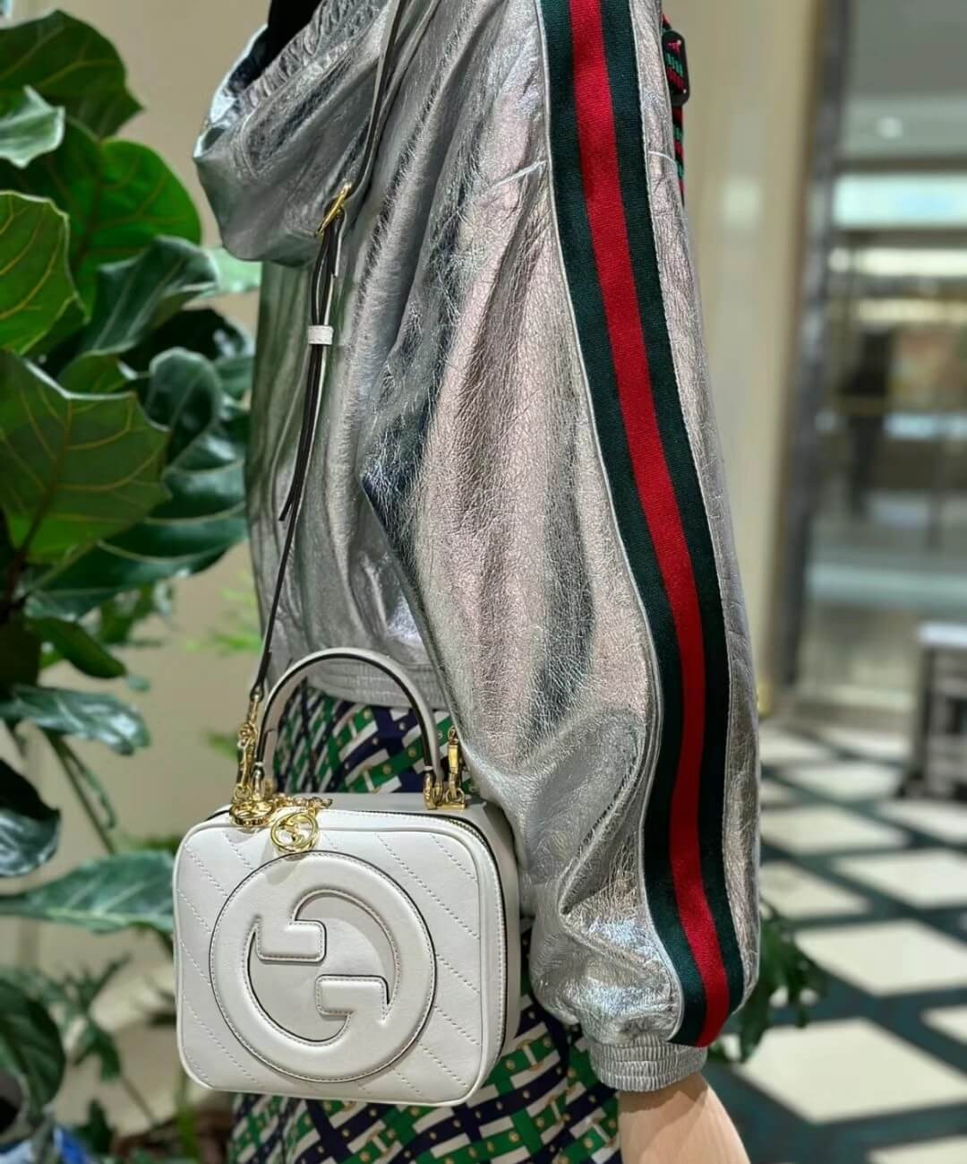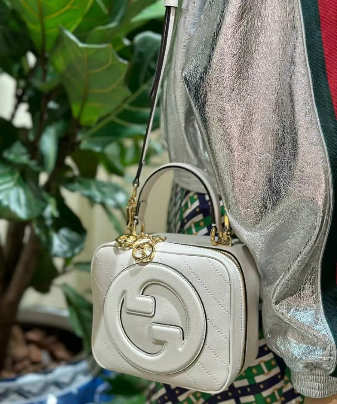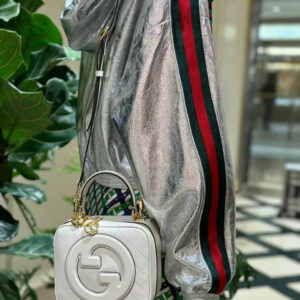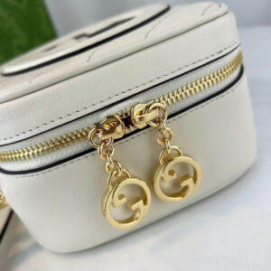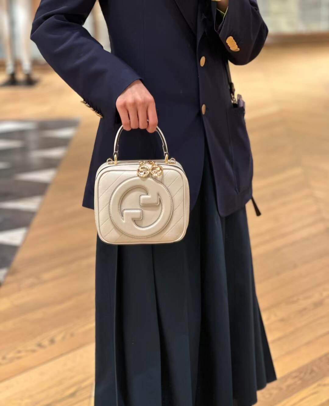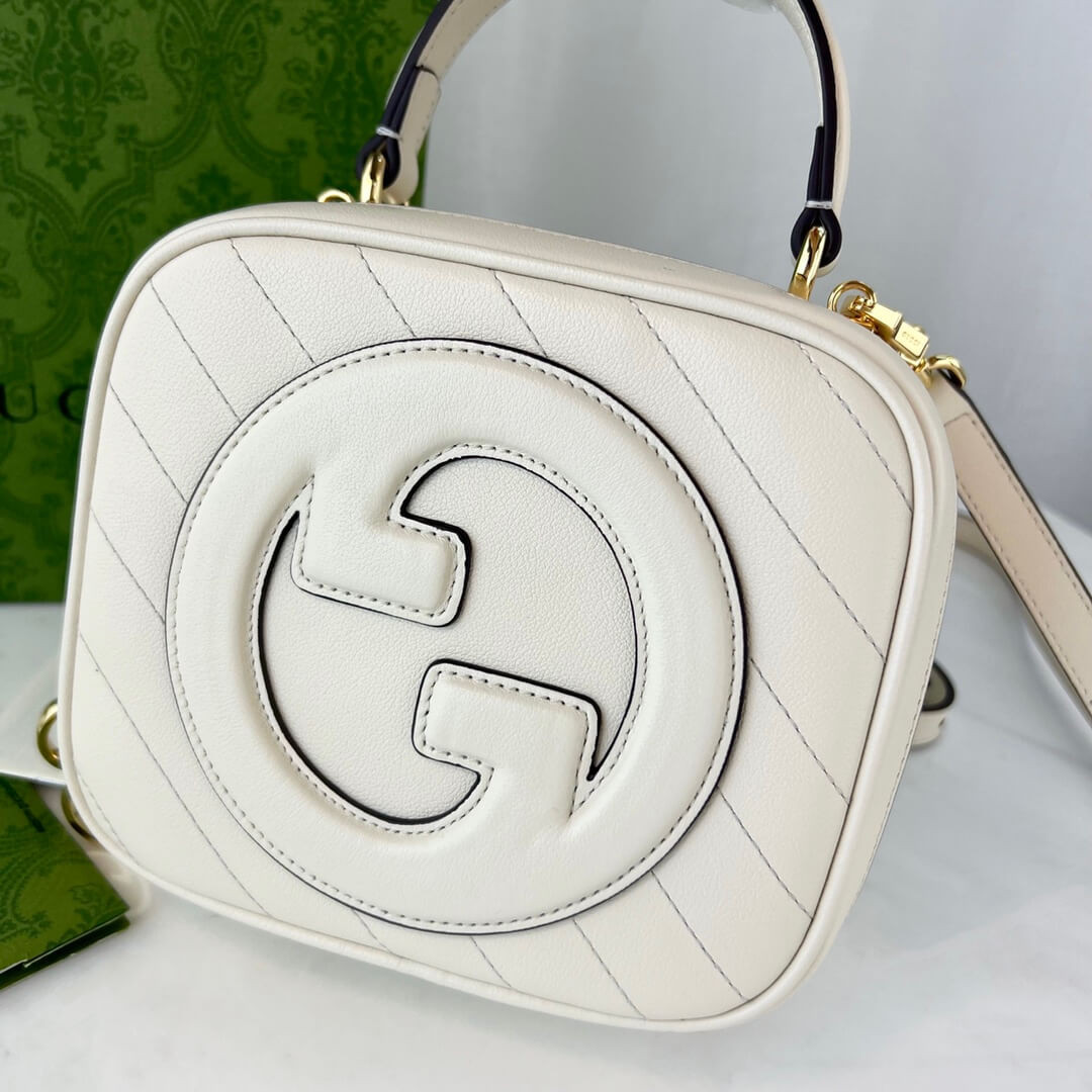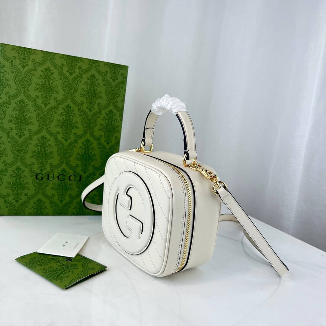 The Round Interlocking G that characterises the Gucci Blondie line originates from the House archives. Signature pieces such as this Gucci Blondie shoulder and crossbody bag with a top handle reinterprets the emblem as a subtler leather patch detail.