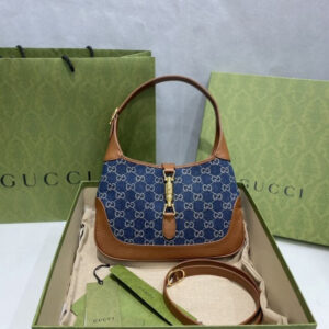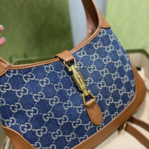 Brought back to the forefront. the recognizable shape is presented in denim with a GG motif and enhanced with an additional. detachable shoulder strap. Attached to the bag with a buckle closure. the second strap adds a contemporary feel to the archival style. providing new ways to wear??from top handle. shoulder to cross body. The Jackie 1961: available exclusively in Gucci stores and on Gucci.com
