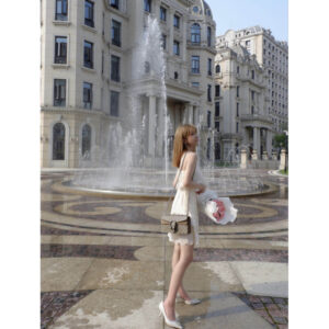 – Sliding chain strap can be worn as a shoulder strap with 23″ drop or can be worn as a top handle with 12.5″ drop
