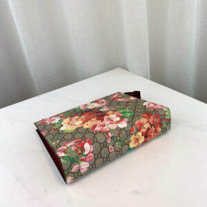 A large cosmetic case in our Blooms print on our GG Supreme canvas. The GG Blooms print was first presented throughout the Fall/Winter 2015 Fashion Show collection and has continued to evolve as an iconic Gucci design.