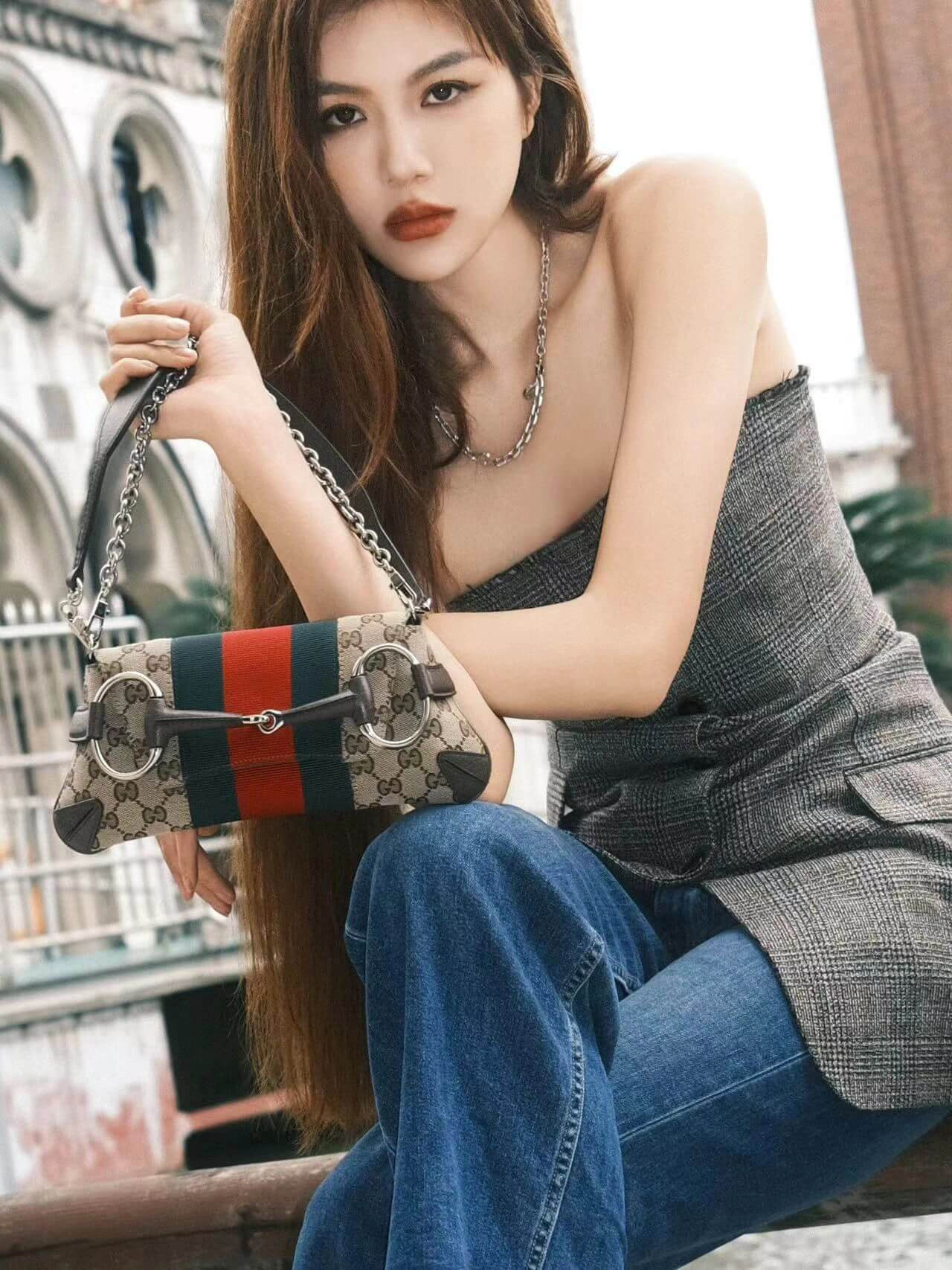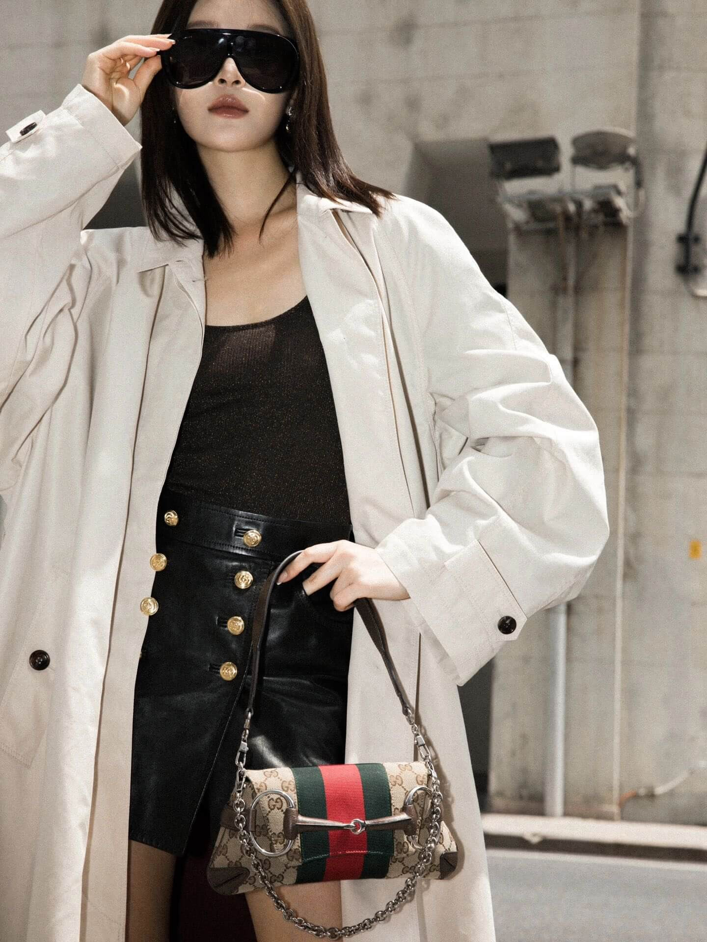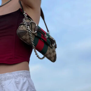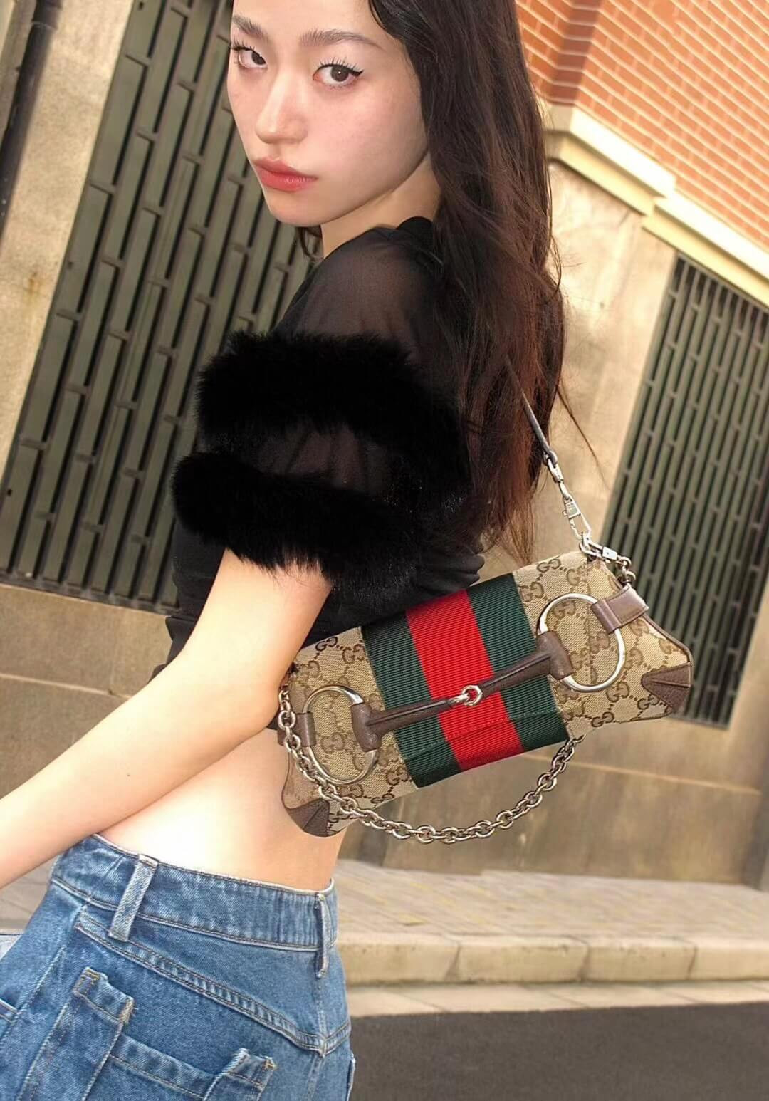 Gucci successfully recalls its past by connecting the archives to the present day. Adorned with a maxi Horsebit, first made popular during the early ‘2000s, this silhouette continues to be one of the most recognizable handbags of the House. Revisited for the Fall Winter 2023 collection, it is presented in various colors and textures that follow a contemporary approach.