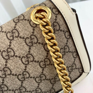 – Sliding chain strap can be worn as a shoulder strap with 22″ drop or can be worn as a top handle with 12″ drop