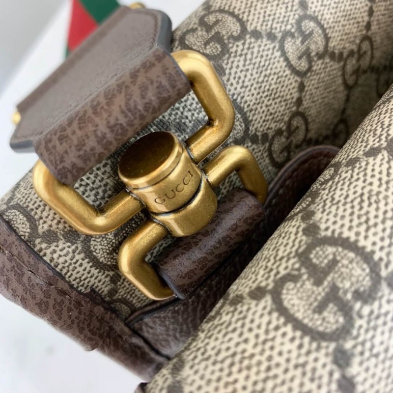 First used in the 1970s. the GG logo was an evolution of the original Gucci rhombi design from the 1930s. and from then it’s been an established symbol of Gucci’s heritage. This small messenger bag combines the signature motif with the Web stripe??a timeless pairing that pays homage to Gucci’s roots.