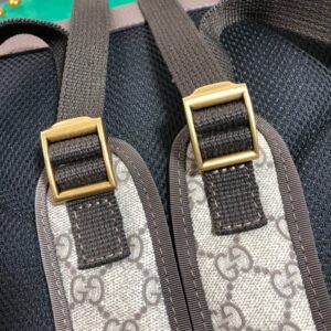 The Gucci Ophidia 22*29cm small backpack 547965 is a versatile style that can be used as a travel accessory or a bookbag. It is part of the ever-expanding world of Ophidia and is crafted in beige/ebony GG Supreme canvas. a material with low environmental impact. with brown leather trim. The backpack features green and red Web detail and antique gold-toned hardware. including the Double G. It has a black mesh back. front zipper pocket. interior zipper and smartphone pockets. and adjustable shoulder straps. The backpack has a zipper closure and a small size of W22cm x H29cm x D15cm. The cotton linen lining adds to its durability and style. The backpack is a significant silhouette in the world of Gucci. offered in a variety of sizes and interpretations. The inlaid green and red Web detail and Double G hardware are steeped in the House’s rich history. referencing symbols incorporated in Gucci collections since the ’50s. It was even featured in Vogue’s 25 Ways to Gucci.