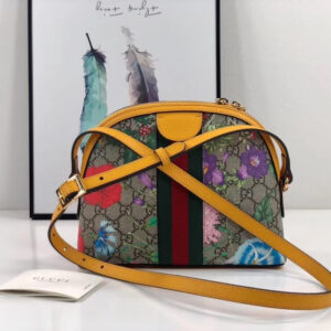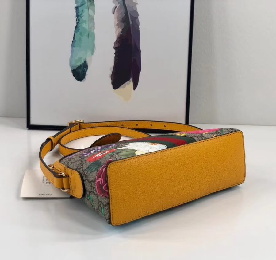 – Beige/ebony GG Supreme canvas with Flora print, a material with low environmental impact, with yellow leather trim