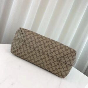 The world of Ophidia continues to expand. introducing new shapes. sizes and silhouettes. The double handled tote is crafted from supple soft GG Supreme. trimmed with textured leather. First used in the 1970s. the GG logo was an evolution of the original Gucci rhombi design from the 1930s. and from then it’s been an established symbol of Gucci’s heritage.