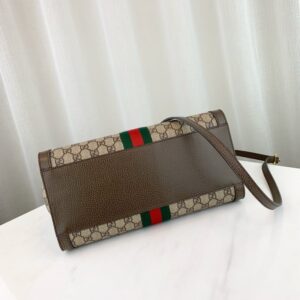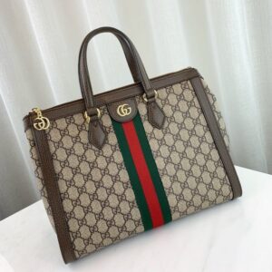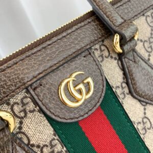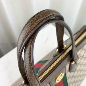 Imbued with retro-inspired references. the world of Ophidia evolves with the introduction of a medium top handle bag defined by a squared shape that recalls vintage designs. Crafted in GG Supreme canvas. the accessory features some of the most distinctive House codes. like the green and red Web stripe??an homage to the equestrian world??and the Double G from the ’70s archives. here reworked with a sophisticated take. The bag is completed with a detachable shoulder strap which allows it to be carried in multiple ways.