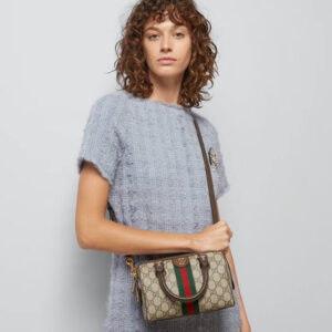 A signature fabric, GG Supreme canvas has become a staple throughout the Gucci universe. Reinterpreted through the Gucci lens, the material appears throughout the latest collections. Here, this mini top handle bag is crafted with the all-over monogram motif. Completing the logo feel, the signature Double G hardware completes the style.