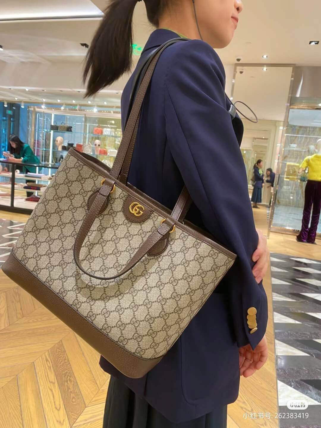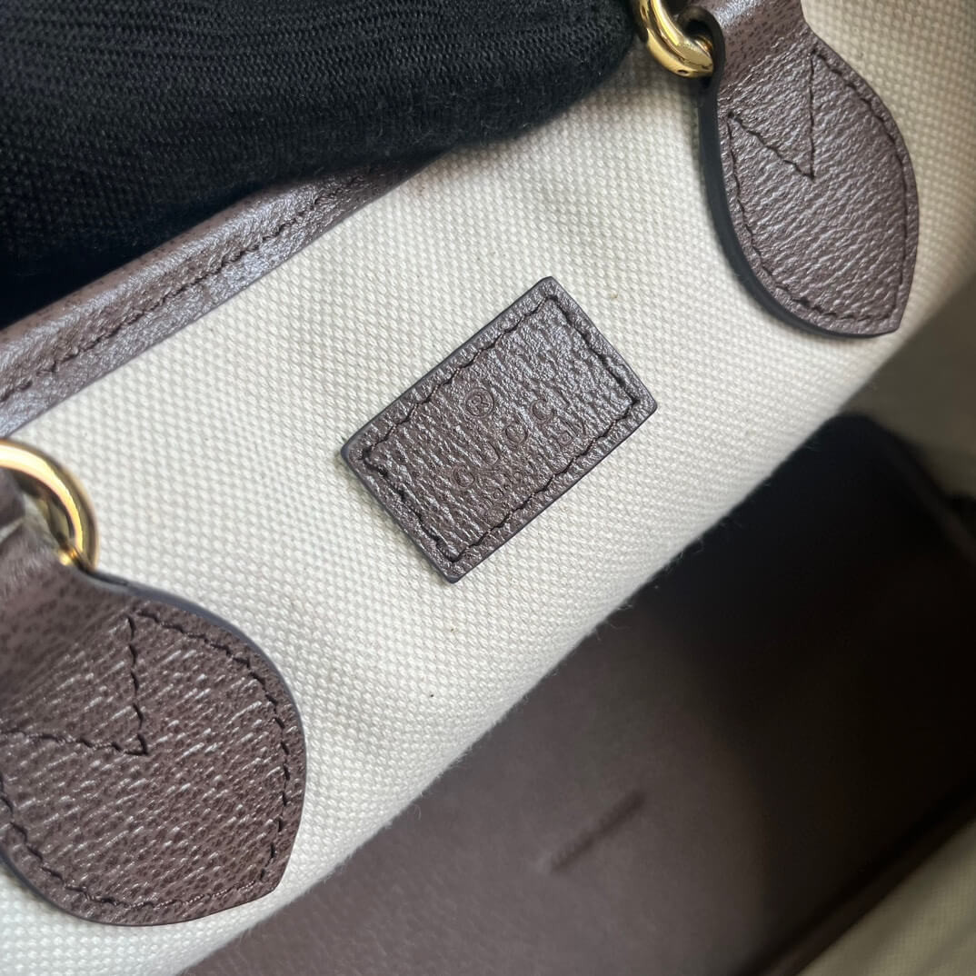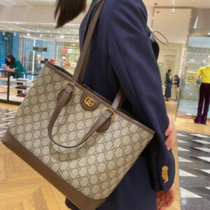 The Ophidia line is further elevated through new sizes and styles including variations with top handles as well as shoulder straps, allowing for versatile wear. The signature Double G hardware completes this beige and ebony GG Supreme design.