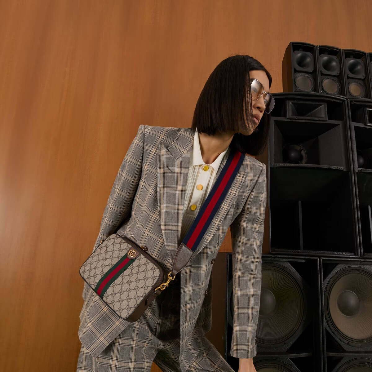 An everlasting design, this Ophidia shoulder bag is presented in the traditional beige and ebony GG Supreme canvas, inspired by an archival design from the 1930s. The emblematic Double G hardware and signature green and red Web stripe enrich this timeless piece with historical references.