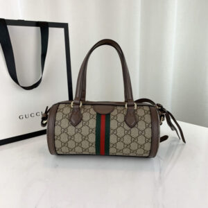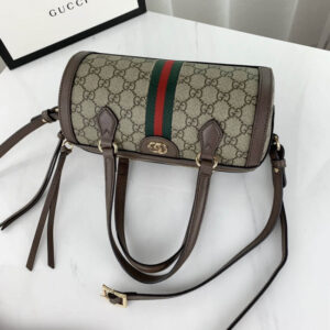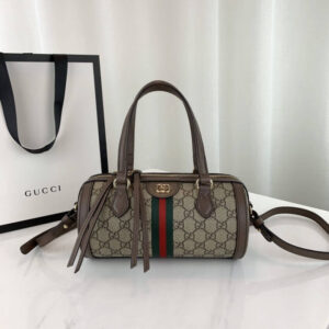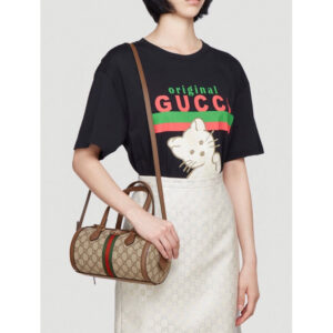 A classic combination of the House’s most defining codes??the GG motif and Web stripe??the world of Ophidia continues to evolve. incorporating new shapes and silhouettes each season. With recognizable design elements in a top handle shape. the Boston bag is trimmed with textured leather and topped with Double G hardware.