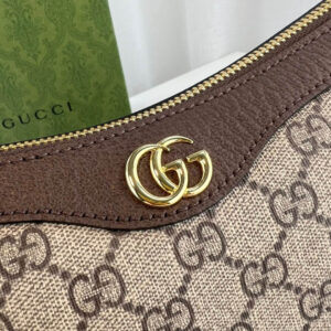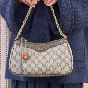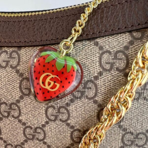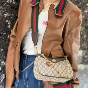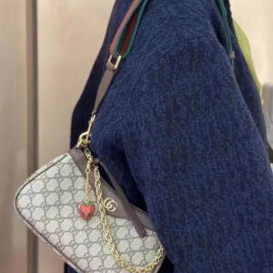 The GG logo is an evolution of the original Gucci rhombi design from the 1930s, and from then it’s been an established symbol of Gucci’s heritage. This unmistakable pattern decorates this small handbag as part of the latest Ophidia line. A Double G hardware completes the style