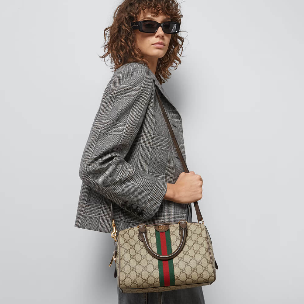 Inspired by the summer spirit and beach clubs on the Italian coast, this item is part of Gucci Lido. A signature fabric, GG Supreme canvas has become a staple throughout the Gucci universe. Reinterpreted through the Gucci lens, the material appears throughout the latest collections. Here, this small top handle bag is crafted with the all-over monogram motif. Completing the logo feel, the signature Double G hardware completes the style.