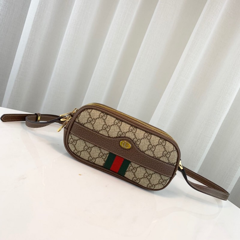 A classic combination of the House’s most recognizable elements??the GG motif and Web stripe??the world of Ophidia continues to evolve. incorporating new shapes and silhouettes. The slim mini bag has three zipper compartments and an adjustable leather strap. Crafted in GG Supreme canvas. it’s trimmed with textured leather and topped with Double G hardware.