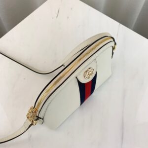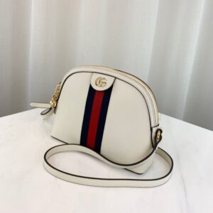 The rounded top Ophidia shoulder bag is introduced in a new iteration for Pre-Fall 2019. crafted from black leather with inlaid green and red Web stripe. The coveted style is defined by small Double G details at the front tab and zipper pulls??a contemporary take on a Gucci archival belt buckle from the ’70s. repurposed into a precious petite variation.