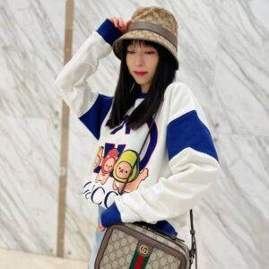 The Ophidia line continues to be one of Gucci signature handbags. New silhouettes are introduced each season, providing versatile travel accessories to suit any destination. The Double G and Web stripe remain integral to the design, presented atop this shoulder bag alongside the signature GG Supreme canvas in beige and ebony.