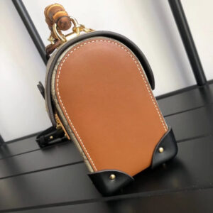 Archival details. including the bamboo handle and closure. combine in a modern silhouette in the small shoulder bag. crafted from GG Supreme canvas. The structured shape has a flap closure that locks with a key kept in a removable leather holder. The top handle shape is further enriched with a removable chain and leather shoulder strap.