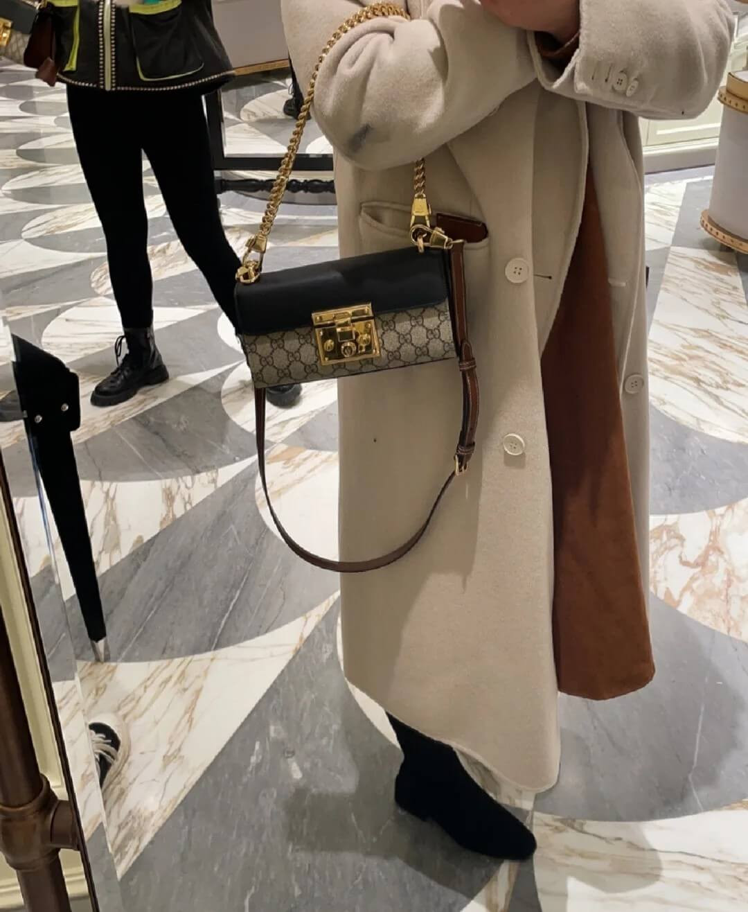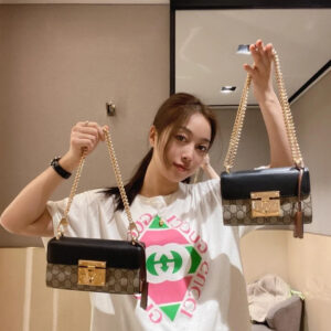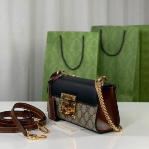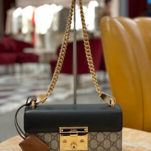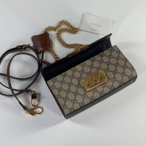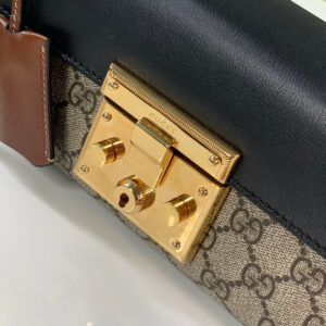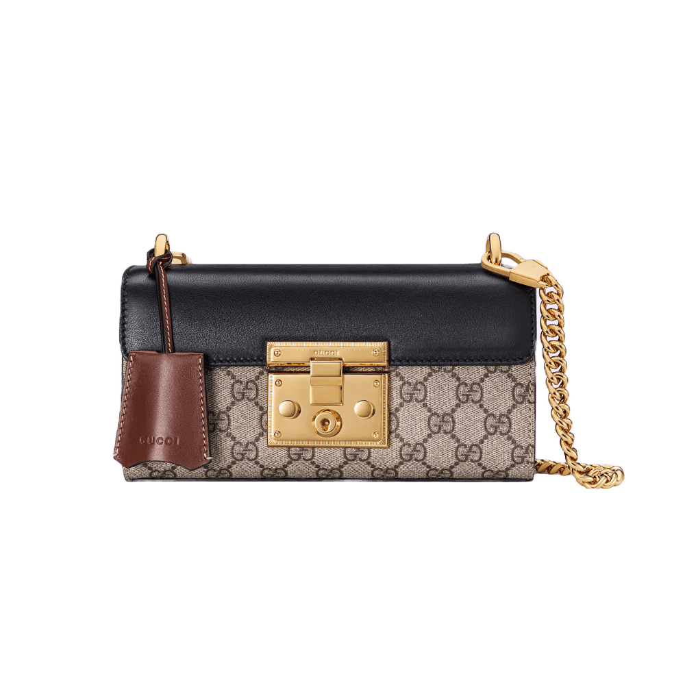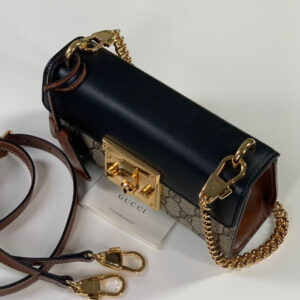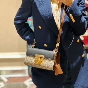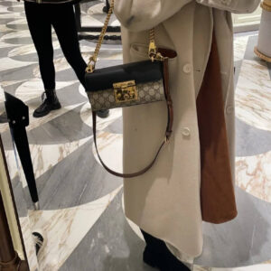 The Padlock’s structured shape is presented in GG Supreme canvas with an oatmeal leather upper. Recalling the brand’s origins in the world of leisure and luggage, the small shoulder bag is defined by its padlock closure.