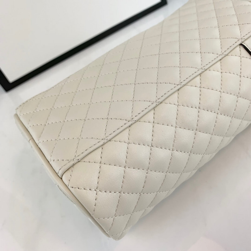 The evolution of the belt bag continues with a new shape for Spring Summer 2019. In an elongated design reminiscent of a bottle carrier. the quilted leather pouch is completed with the Interlocking G Horsebit. Detachable chain straps allow the style to be worn as a belt bag. a shoulder bag or used as a pouch.