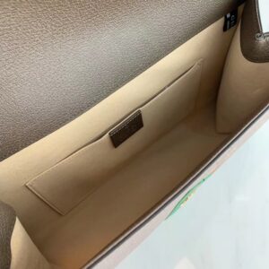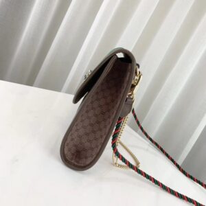 An addition to the Rajah line for Spring Summer 2019. the medium shoulder bag is introduced in mini GG Supreme canvas??a new take on the signature pattern with a vintage look that is heightened with the green and orange Web. Featuring the collection’s colored enamel and crystal tiger head. inspired by a vintage piece from legendary fashion and jewelry designer Hattie Carnegie’s 1940s archives. the bag is designed with two straps: one short chain strap and a longer shoulder strap in the House’s signature green and red Web colors.