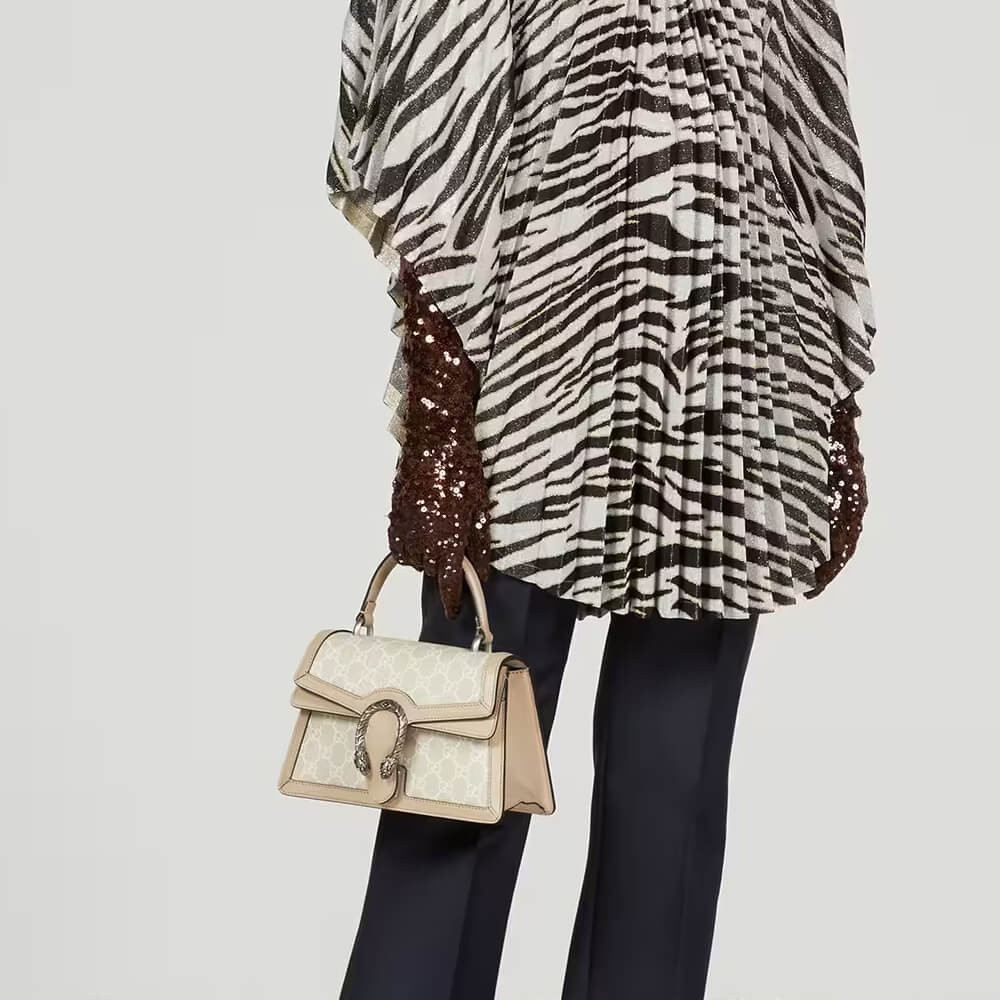 Gucci Small Dionysus Top Handle Bag 739496 Oatmeal Leather Trim