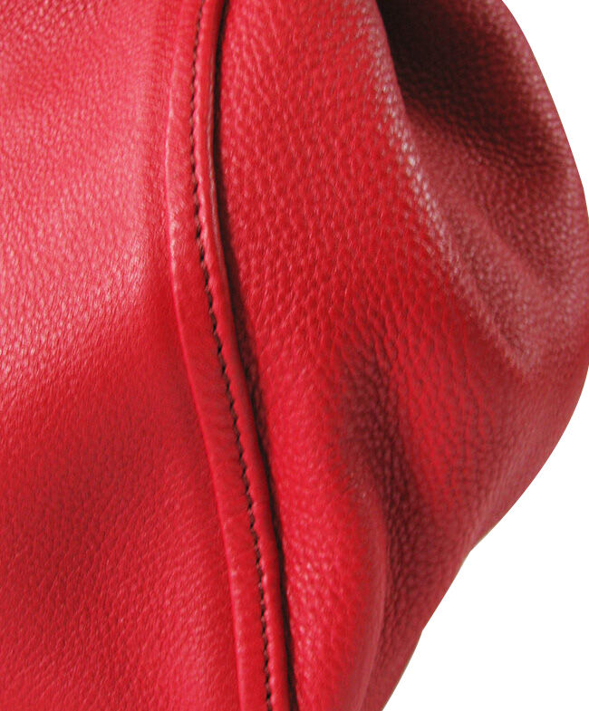 | Closure | Short slim leather straps on the sides pulled together and held with a hook clasp closure |