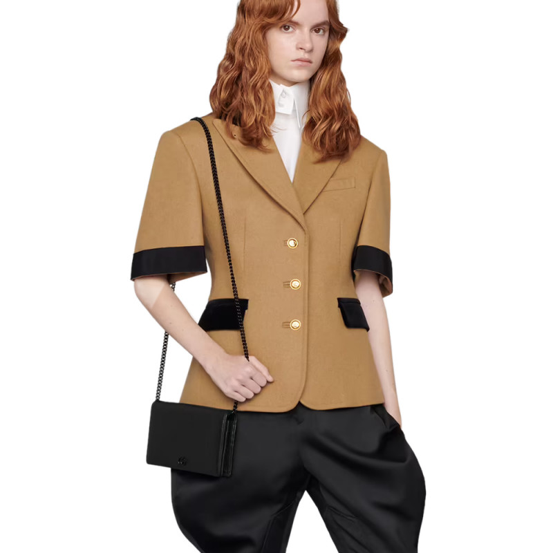 The Gucci Textured Leather GG Marmont Mini Chain Bag 497985 is a timeless black leather wallet that features the iconic Double G hardware. which was first introduced as a belt buckle in the ’70s. The hardware is reimagined in tonal resin. giving the accessory a contemporary feel. The monochrome shades of the bag add to its modern design. which is accentuated by a detachable shoulder strap.