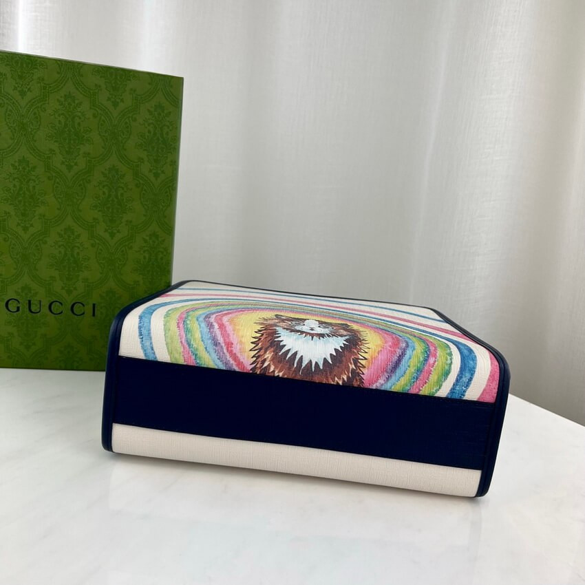 Well known for his drawings of cats and kittens, this colorful children’s tote bag is characterized by a print inspired by the works of British illustrator Louis Wain. The style pairs the name of the House with a playful cat design featuring geometric shapes.