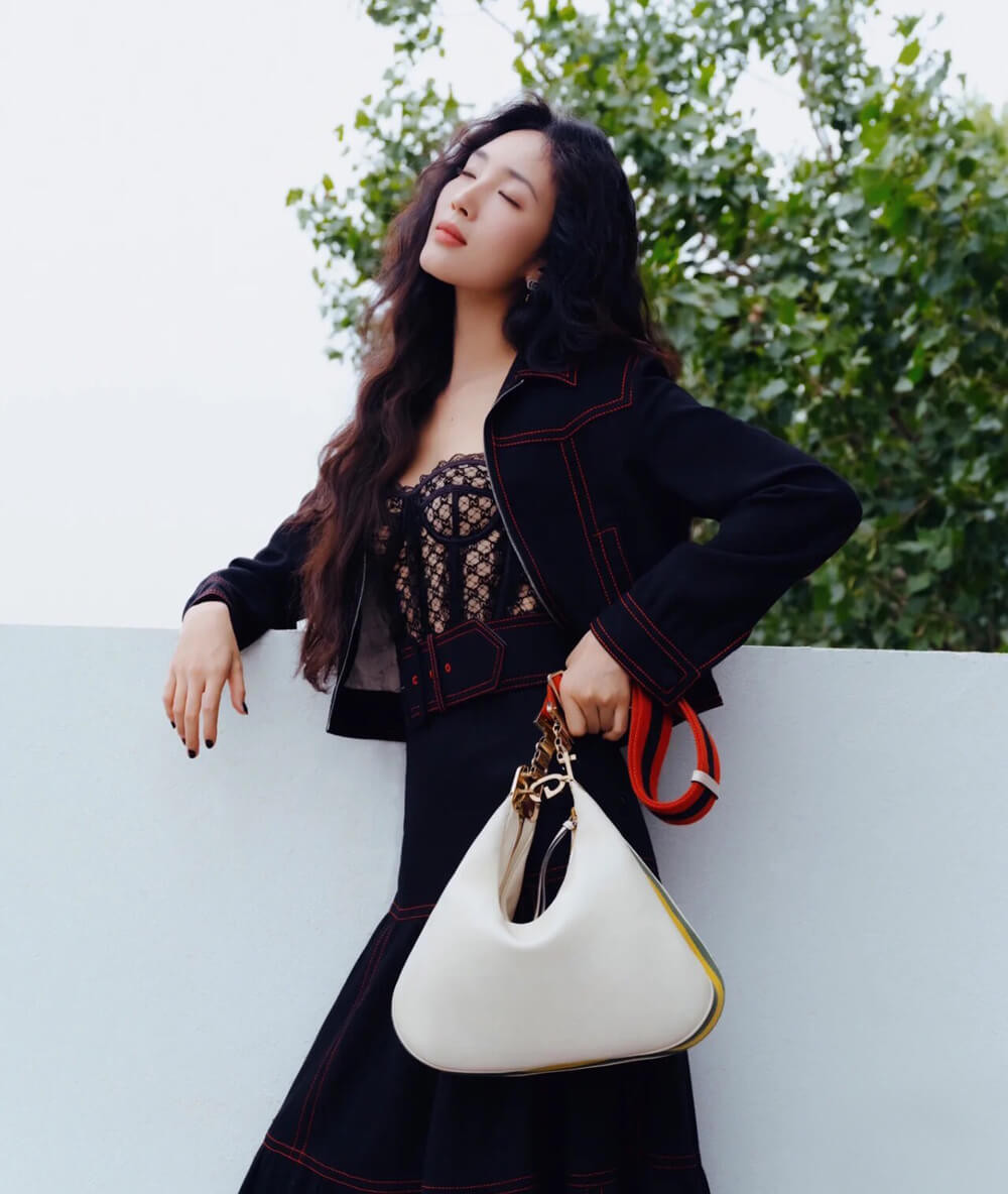 An ode to the timeless Hollywood glamour that shaped Gucci Love Parade, classic elements from the House’s archives are reintroduced. Distinguished by its crescent moon shape, the accessory is further defined by a G shaped hook closure. Paired with soft materials, the heritage hardware creates a refined design with vintage appeal. This medium version is crafted in black leather with orange and black Web trim.
