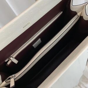 Merging two of its most distinctive codes into one symbol: the Interlocking G Horsebit ?C the hardware is replicated from a rare piece from the Gucci archives. chosen for its contemporary appeal and presented in a mix of silver and gold tones. A detachable strap creates multifunctionality. doubling as a shoulder bag. while the top opening frame features a hinged lock on each side for a secure closure. Introduced in the evocative setting of the Theatre Le Palace in Paris. the Gucci Zumi line takes its name from actress and experimental musician Zumi Rosow. who walked the Spring Summer 2019 runway carrying the bag.