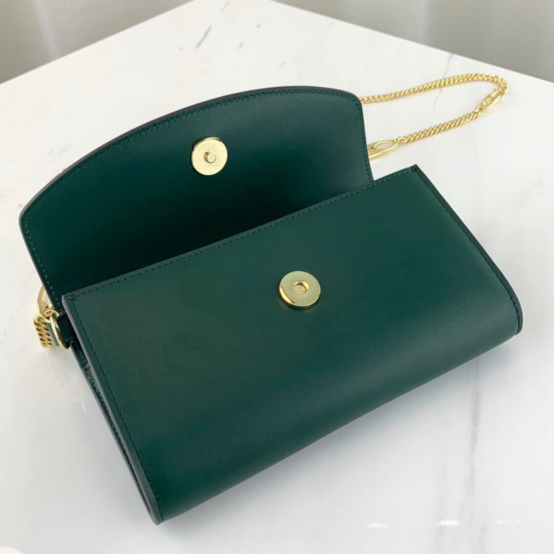 – Detachable Marina chain shoulder strap with 20″ drop secures with a button closure at the interior flap