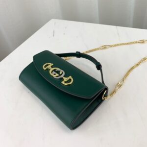 Introduced in the evocative setting of the Theatre Le Palace in Paris. the Gucci Zumi line takes its name from actress and experimental musician Zumi Rosow. who walked the Spring Summer 2019 runway carrying the bag. Gucci continues to bring House icons to the forefront in unexpected ways. merging two of its most distinctive codes into one symbol: the Interlocking G Horsebit. The hardware is presented in a modern mix of silver and gold tones on a smooth leather mini shoulder bag. The bag can be carried cross body. used as a clutch when the chain is removed and worn as a top handle when the leather handle is extended.