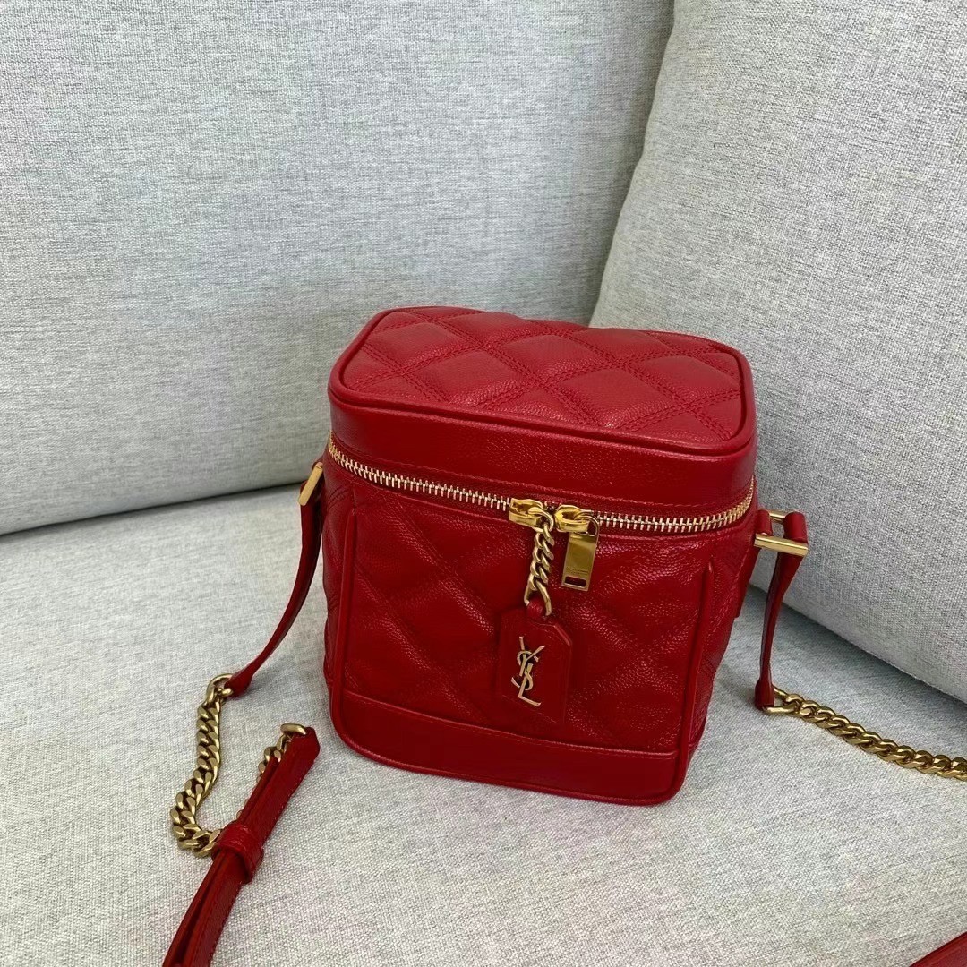 Saint Laurent 80's Vanity Bag In Red Quilted Grained Leather