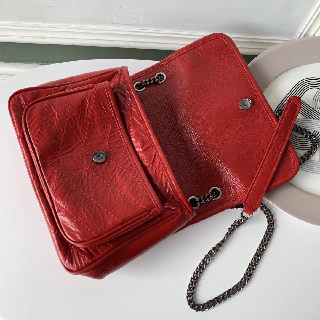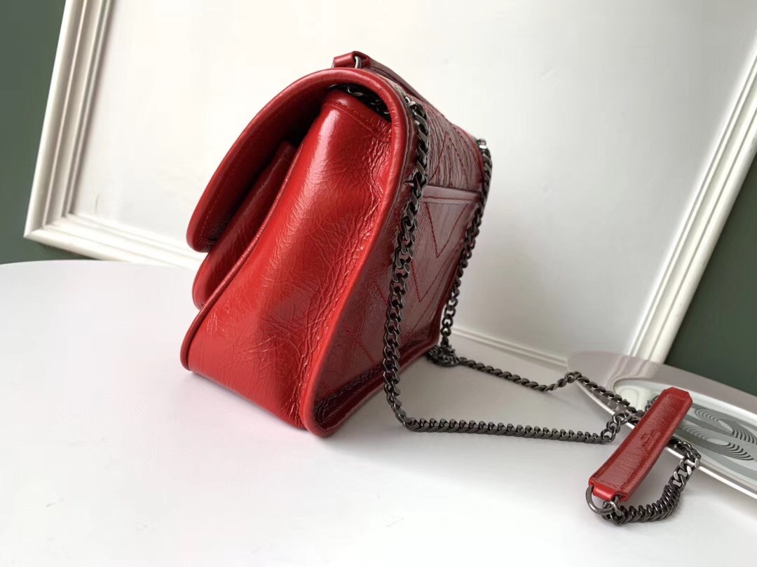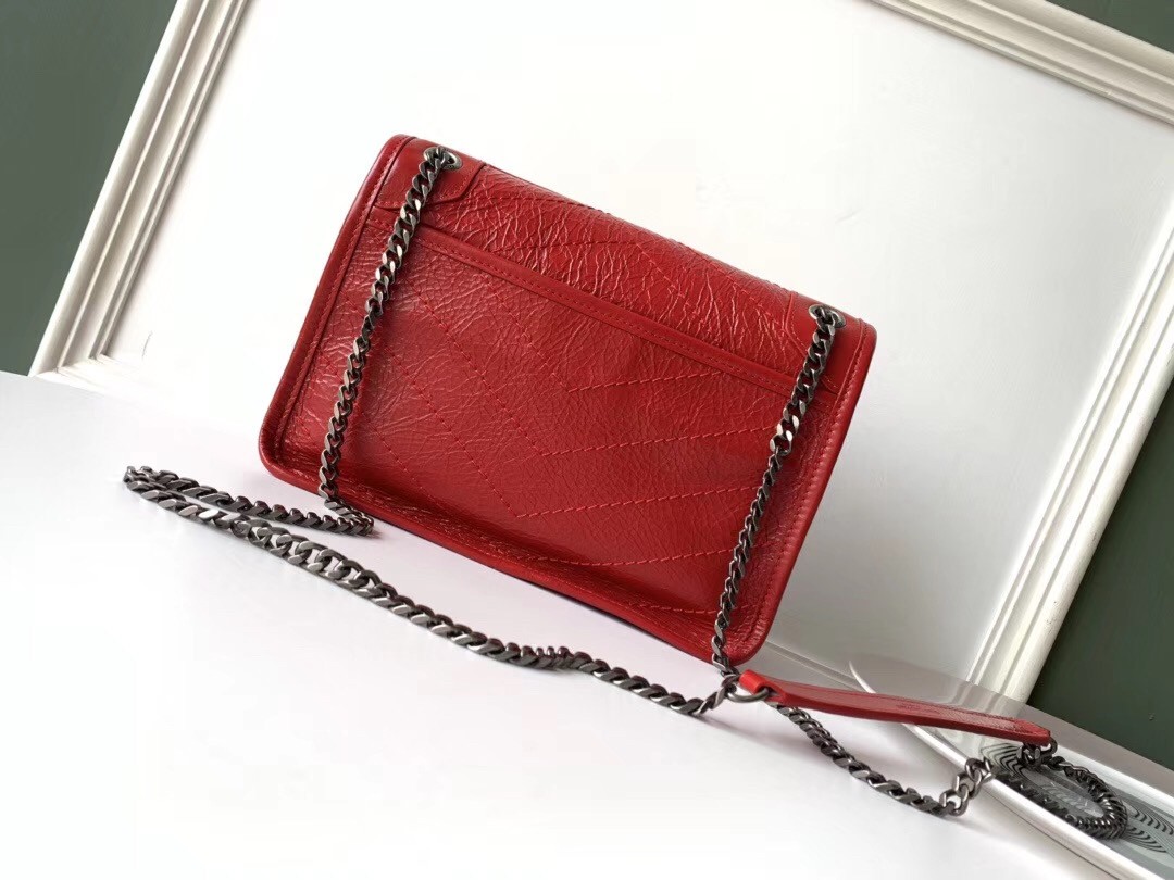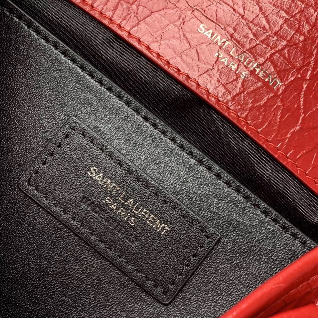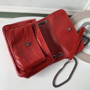 – One central compartment, one inside pocket, one zippered pocket, one open pocket in back, and one pocket under flap