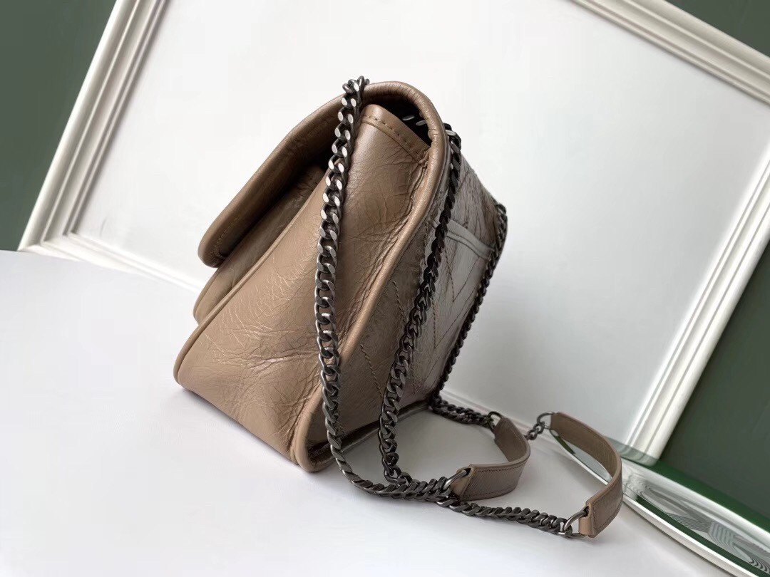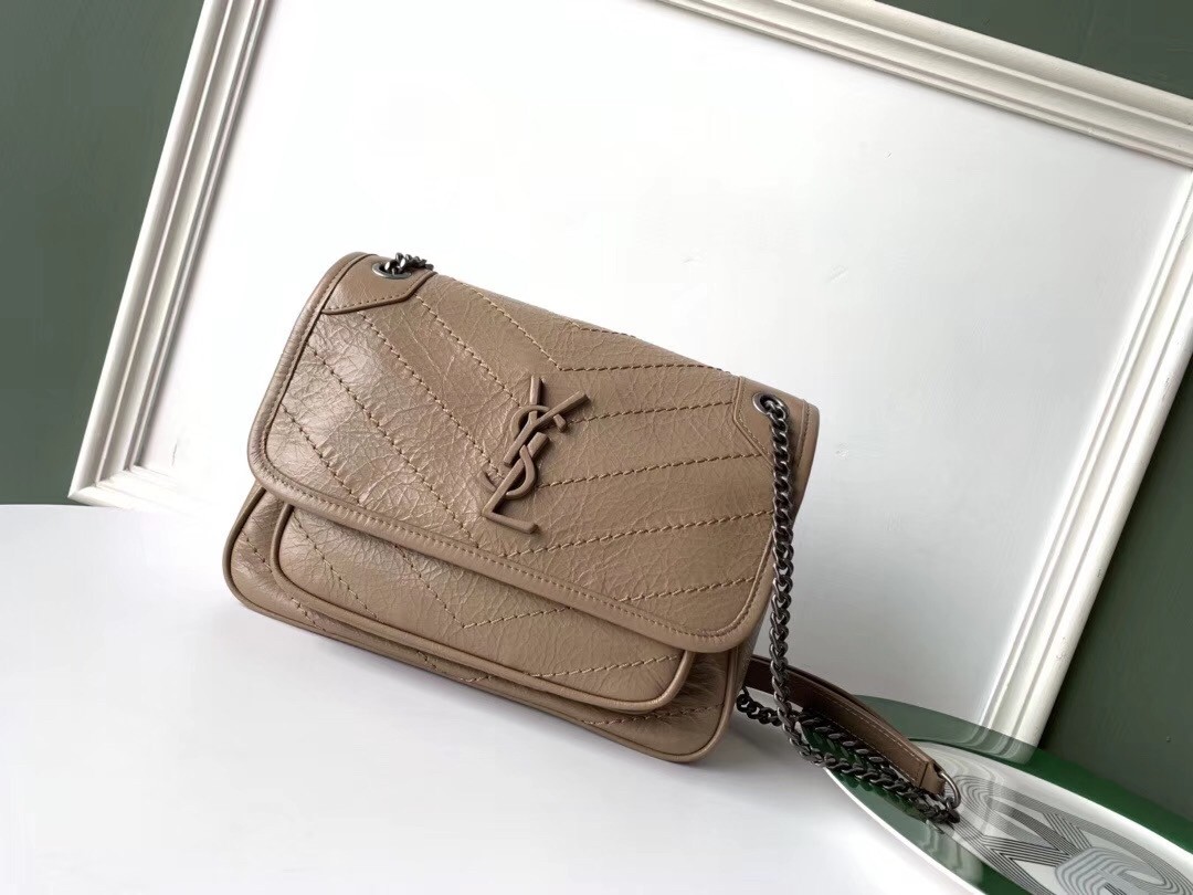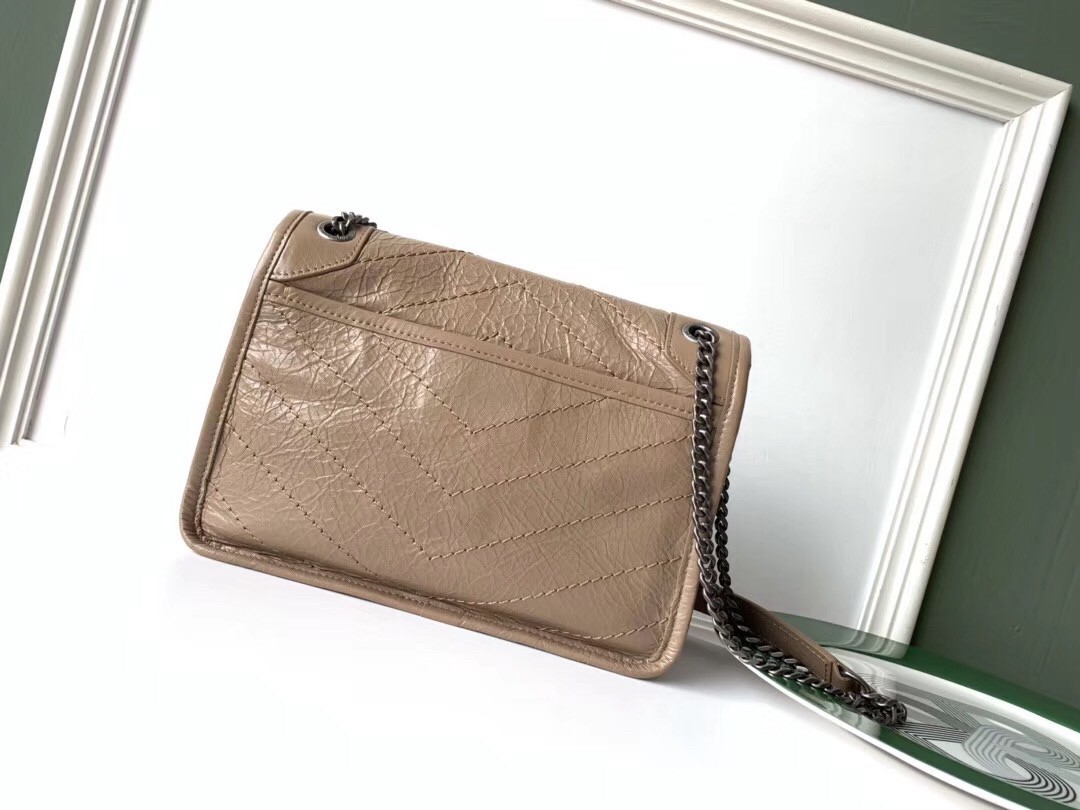 Saint Laurent Baby Niki Chain Bag In Taupe Crinkled Leather