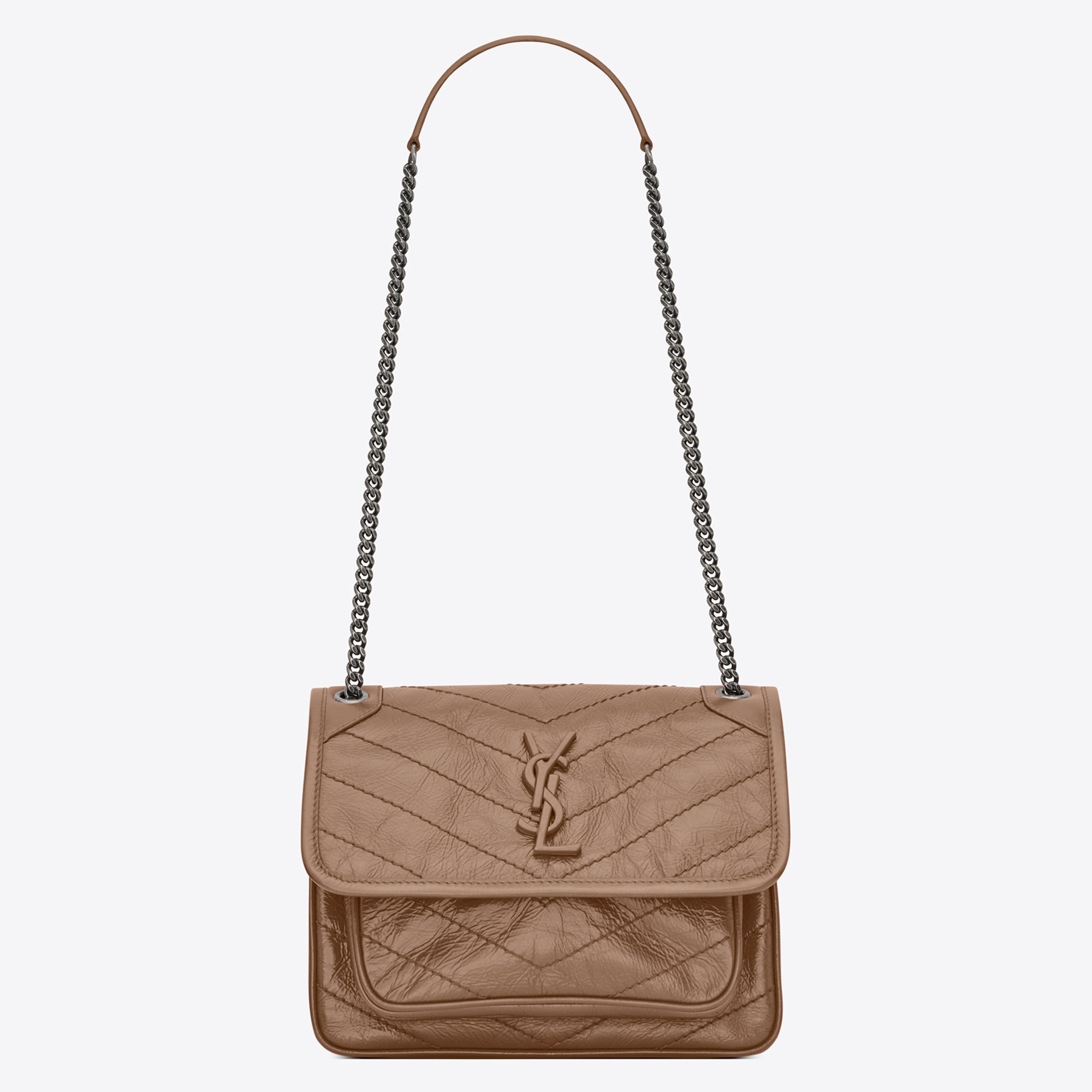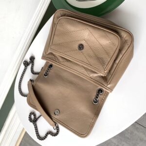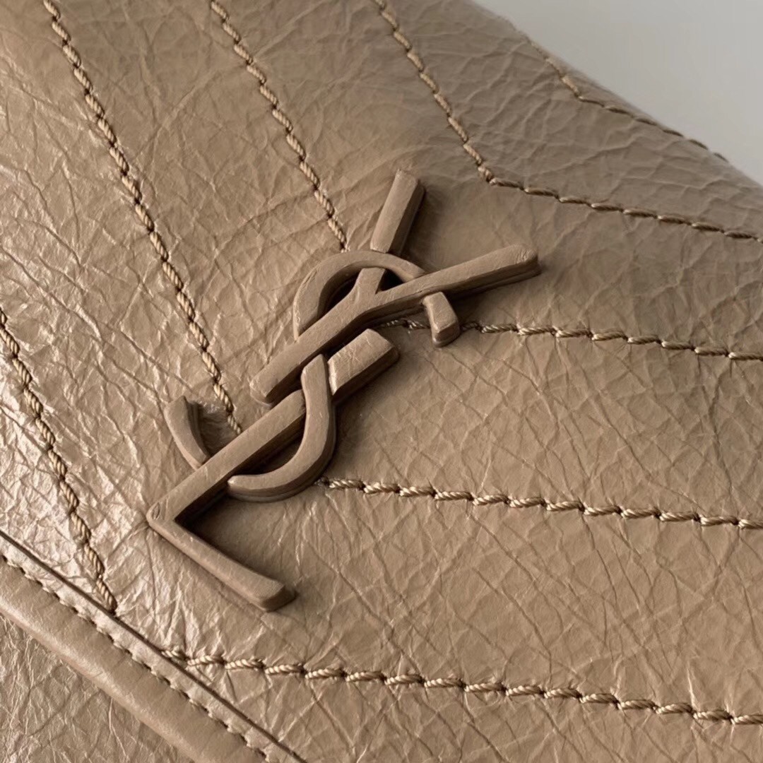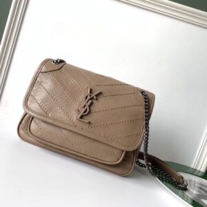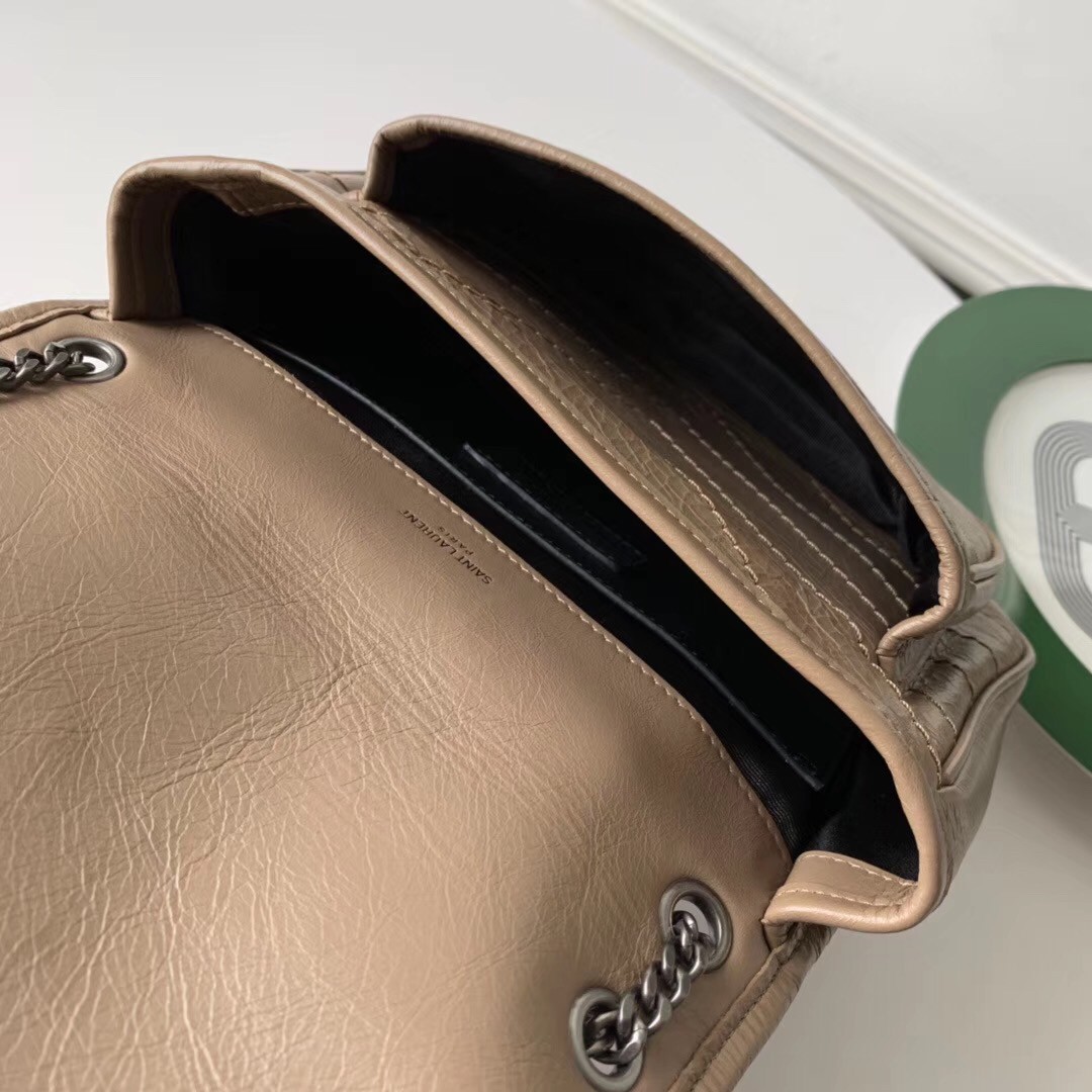 Saint Laurent Baby Niki Chain Bag In Taupe Crinkled Leather