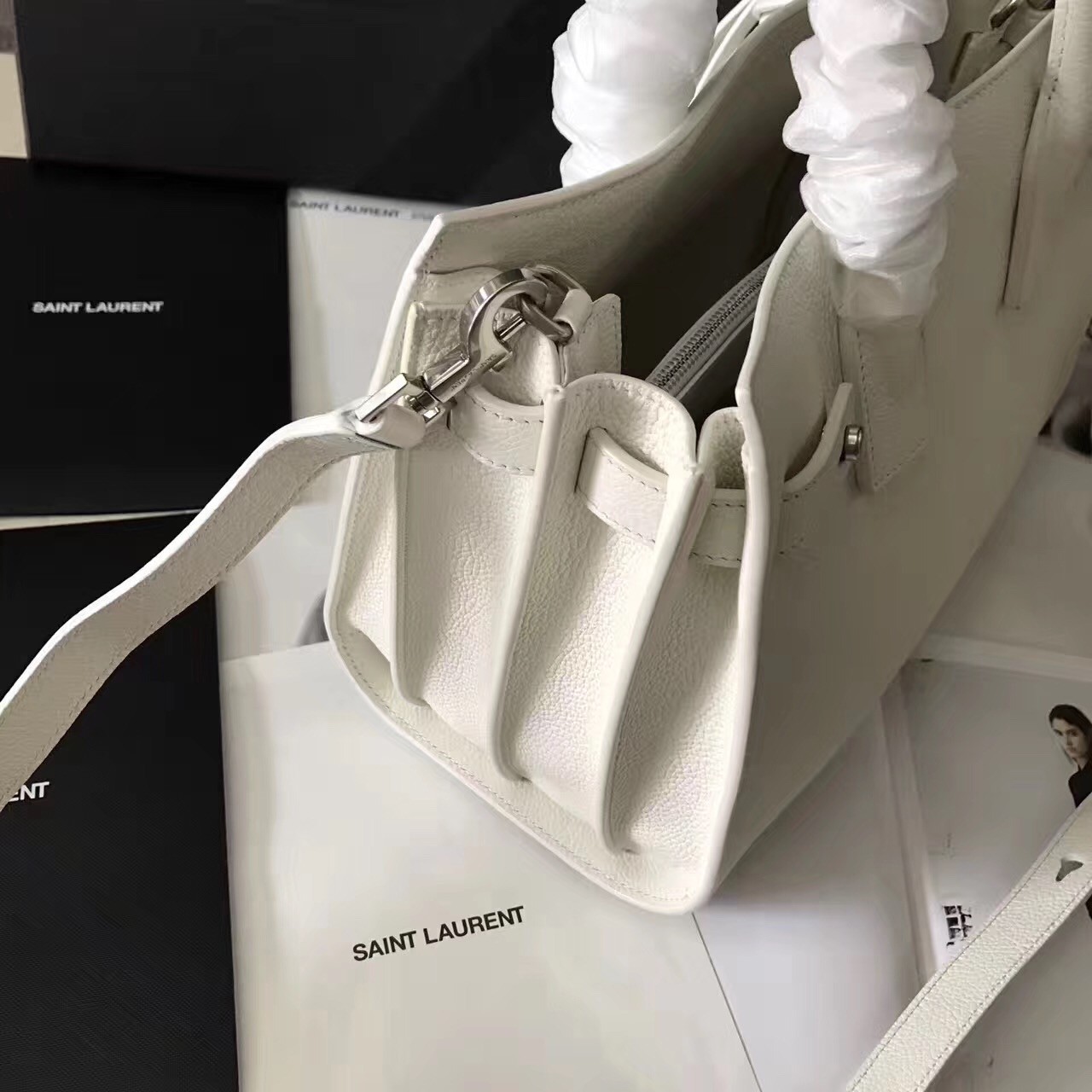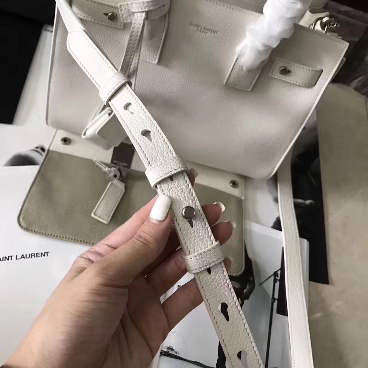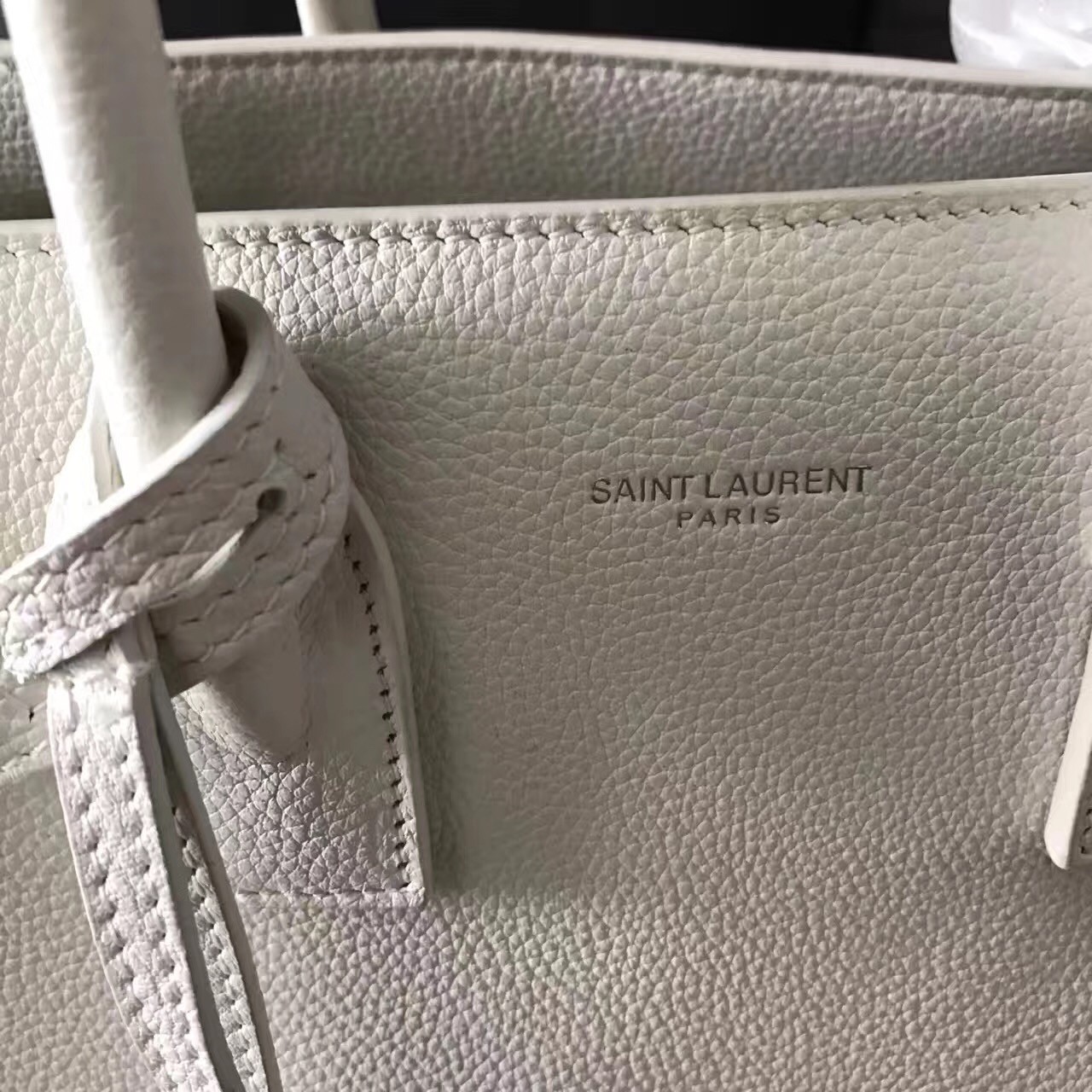 Saint Laurent Baby Sac de Jour Souple Bag In White Grained Leather